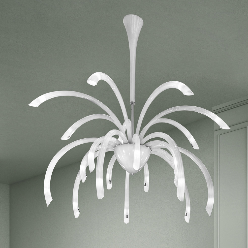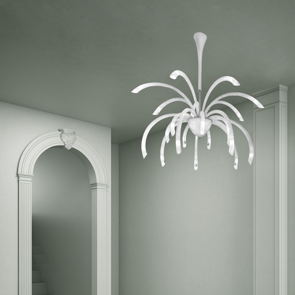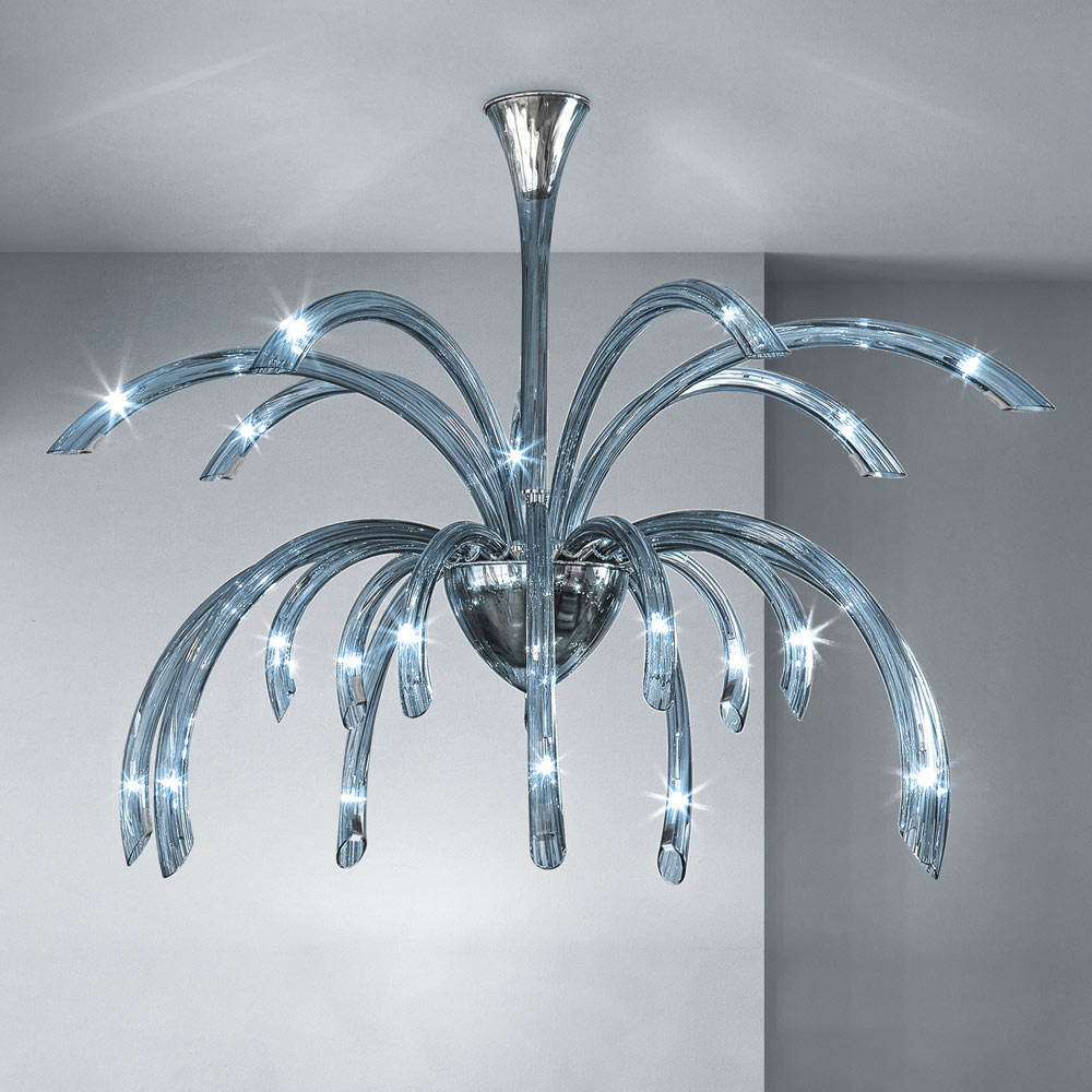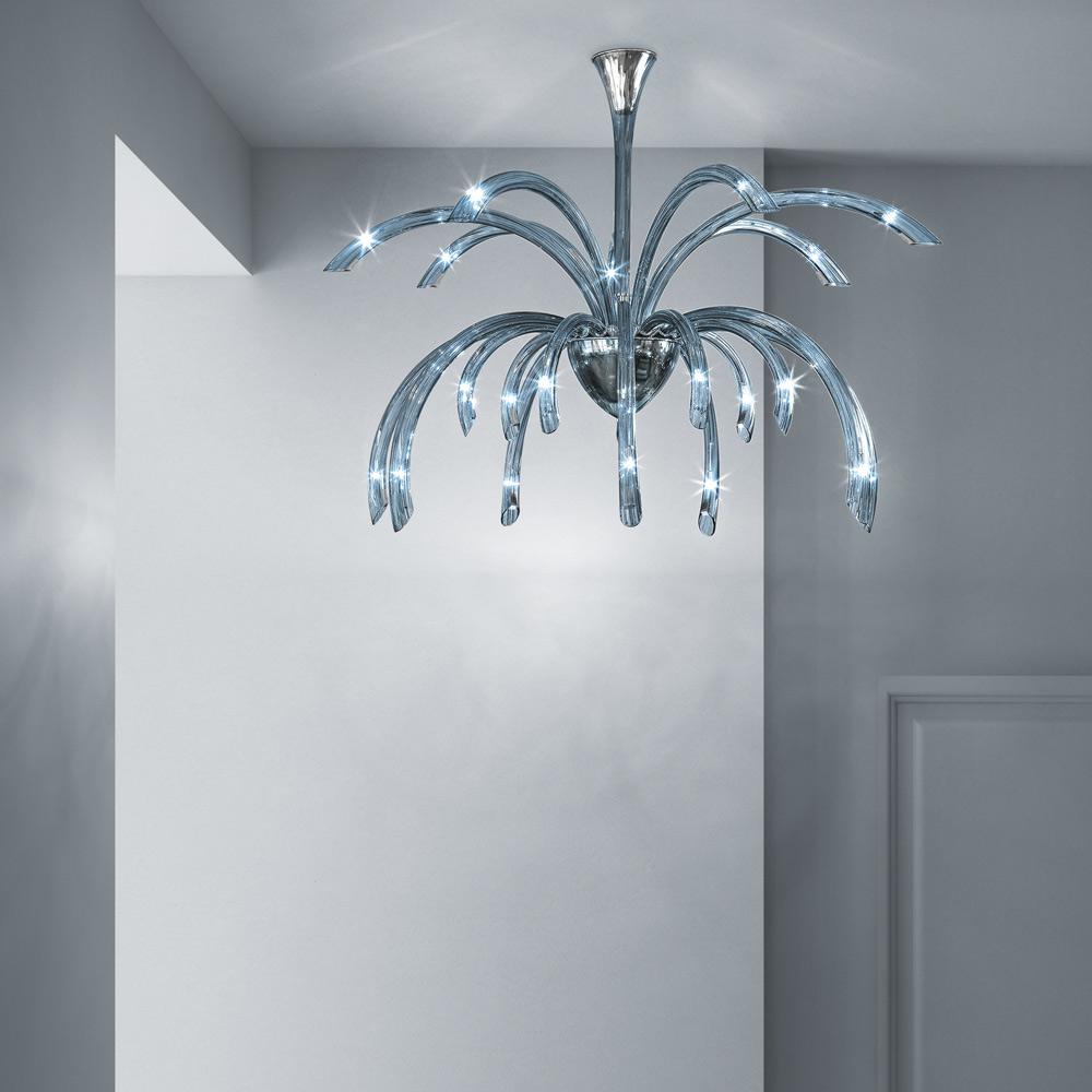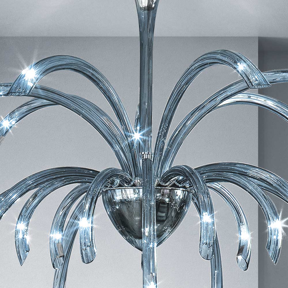Lustre 21 lumières en verre vénitien et métal artisanal Made in Italy.