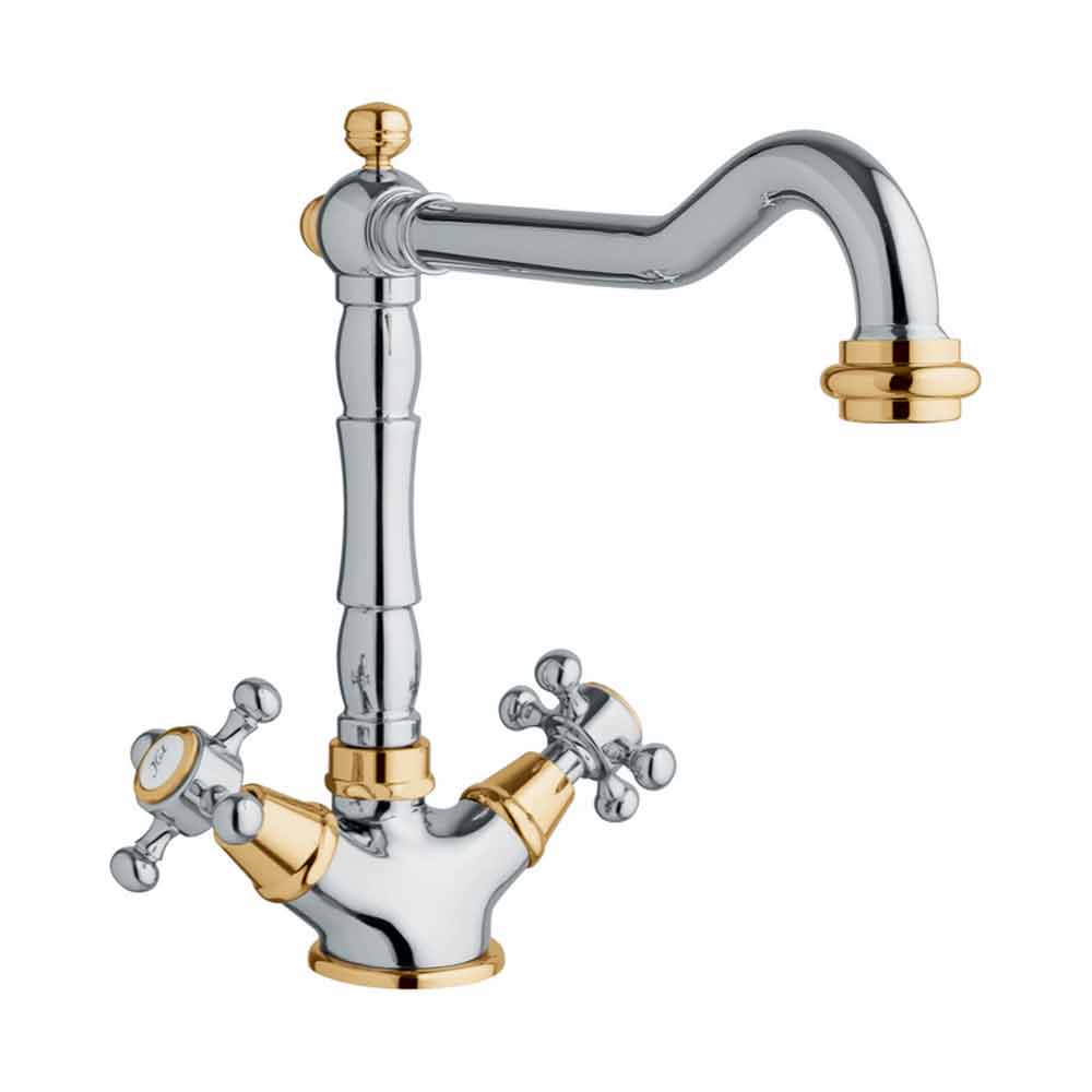 Mélangeur monotrou pour évier de cuisine en laiton, design classique Made in Italy.