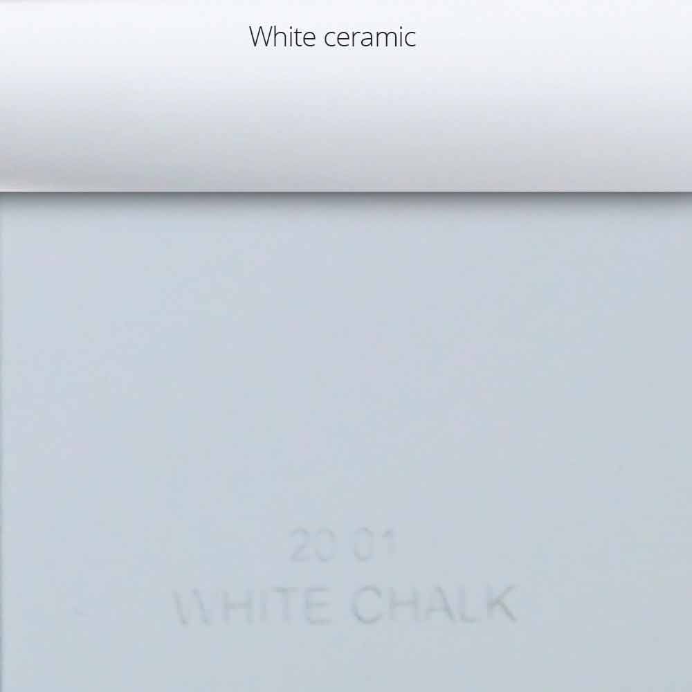 Craie blanche: finition blanche mate avec inserts en céramique blanche sur les poignées;