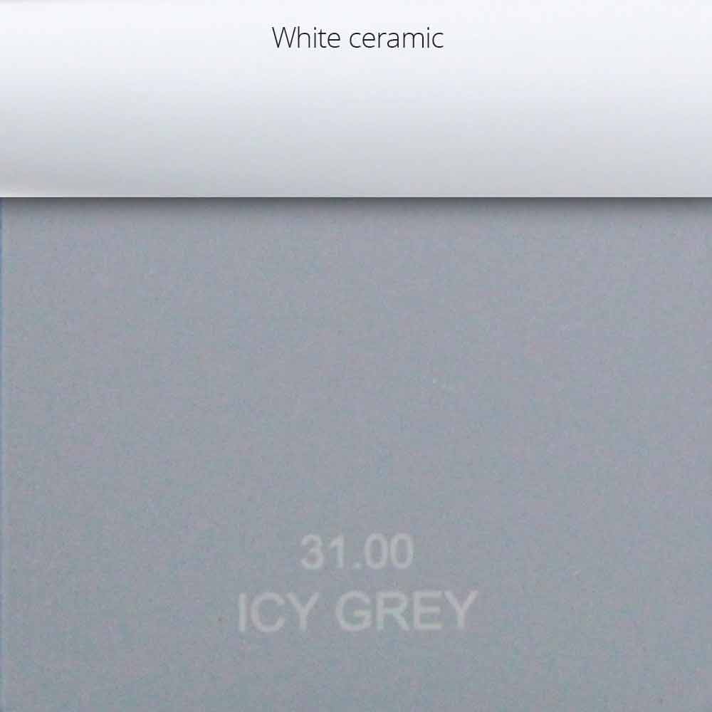 Icy Grey: finition gris clair mat froid avec inserts en céramique blanche sur les poignées;