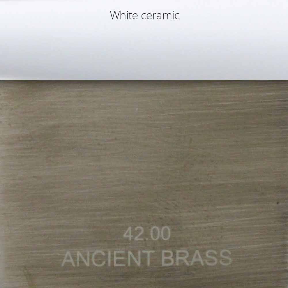 Laiton antique: finition laiton antique brossé mat avec inserts en céramique blanche sur les poignées;