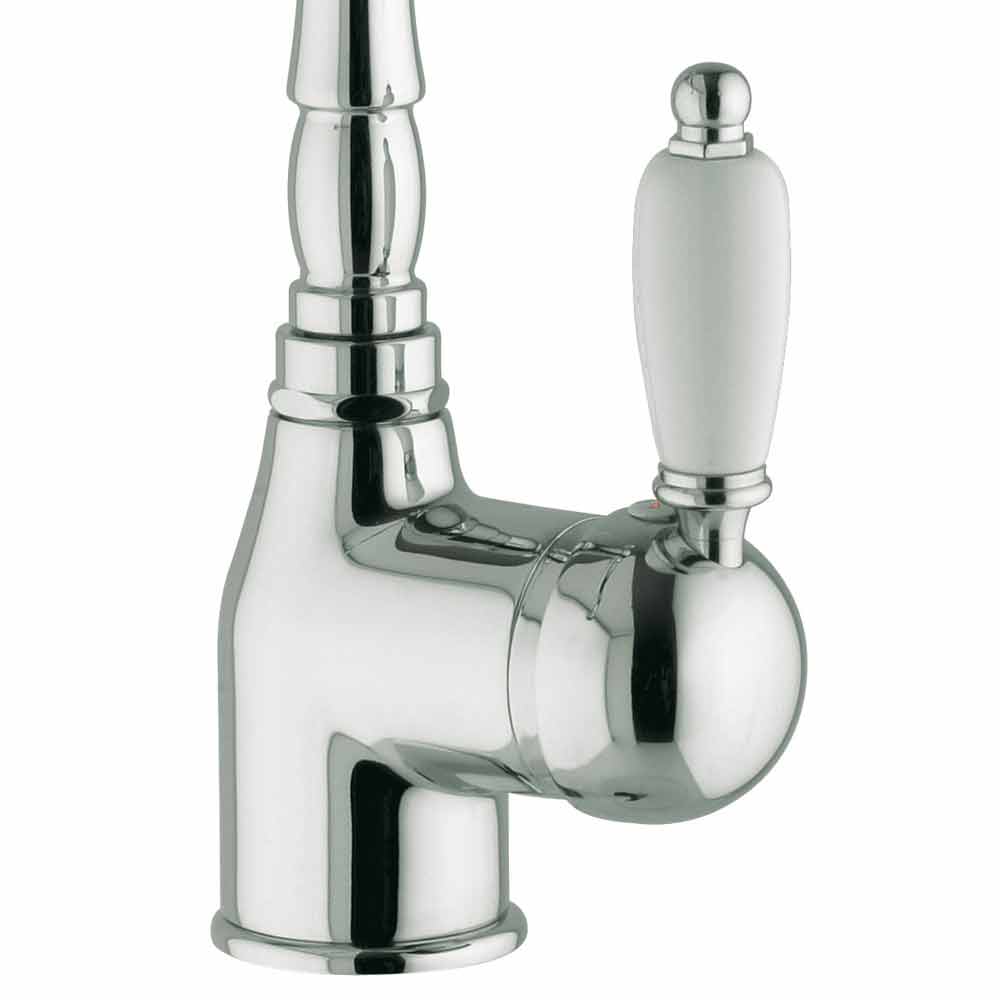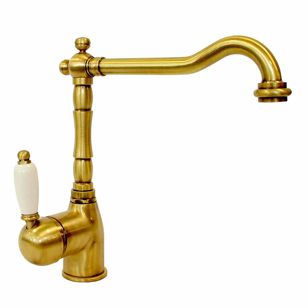 Mélangeur d' évier de cuisine fabriqué en Italie en laiton avec bec antique réglable. Caractérisé par une attention particulière à l'environnement, cet article propose une cartouche définie ES conçue et conçue précisément pour l'économie d'énergie car elle fournit de l'eau froide lorsque le levier est relevé en position centrale évitant ainsi la demande d'eau chaude à la chaudière permettant ainsi un économie d'énergie conséquente. Son design se caractérise par des lignes au goût classique qui, rencontrant l'élégance du laiton et ses merveilleuses finitions, créent un élément raffiné capable de révolutionner l'ameublement de n'importe quelle cuisine, donnant une touche raffinée et classe parfaite pour les environnements avec un très aussi traditionnel que moderne et contemporain.
