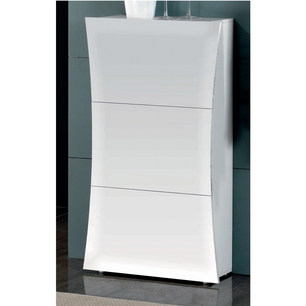 Meuble à chaussures colonne moderne blanc en bois design arqué avec 3 portes, fabriqué en Italie.