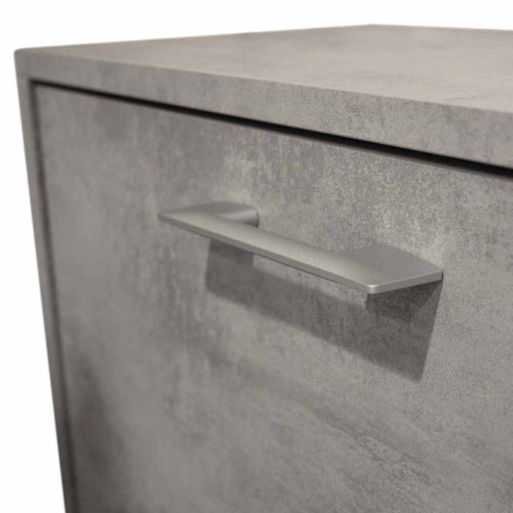 Meuble à chaussures avec trois tiroirs de rangement. Structure en panneau de particule, finition Cleaf effet ciment.