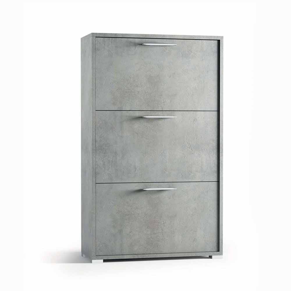 Armoire à chaussures 3 abattants double étage Senis, finition ciment Cleaf.
