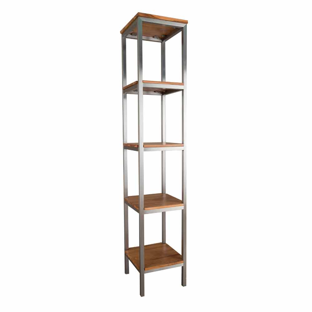 Meuble de salle de bain colonne en teck et acier avec 4 étagères ouvertes - Tamburino