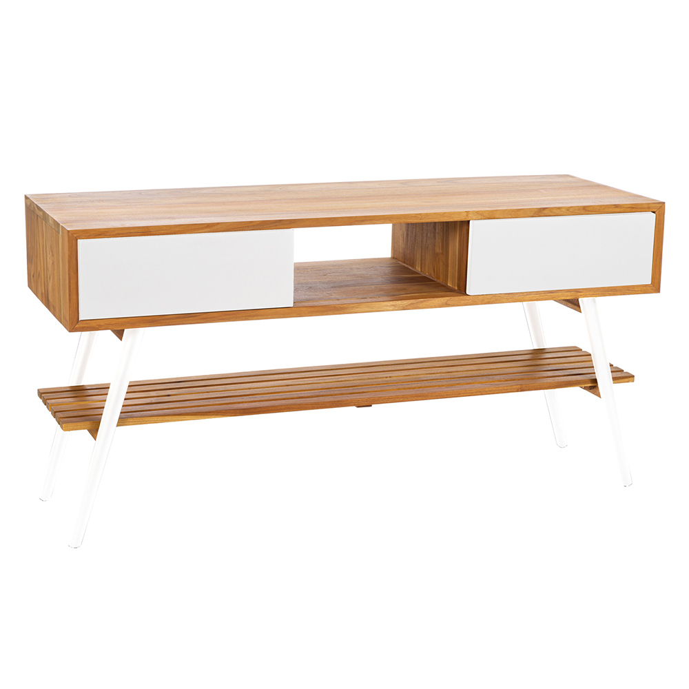 Meuble de salle de bain en teck naturel avec tiroirs blancs en acajou - Hamadou