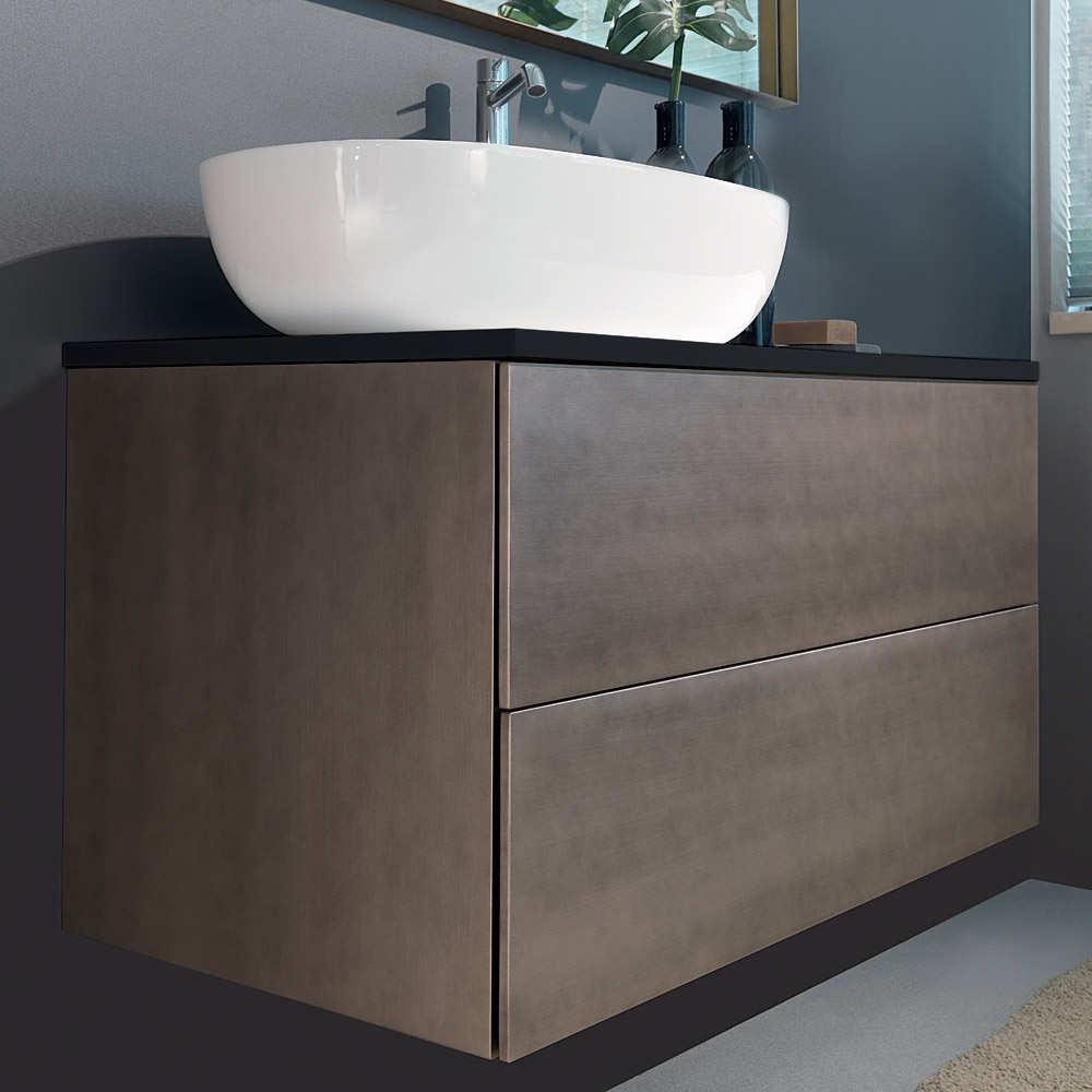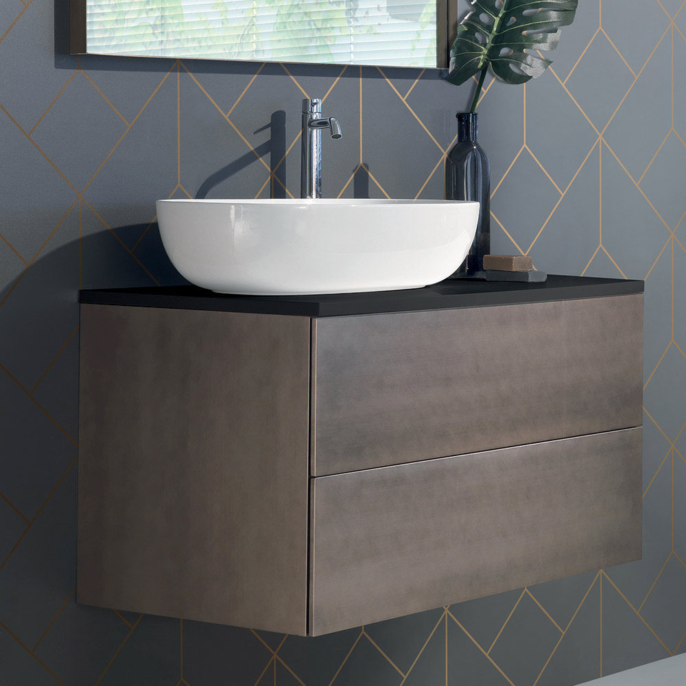Meuble de Salle de Bain Suspendu en Bois, Métal et Céramique L96 cm, Précieux - Renga