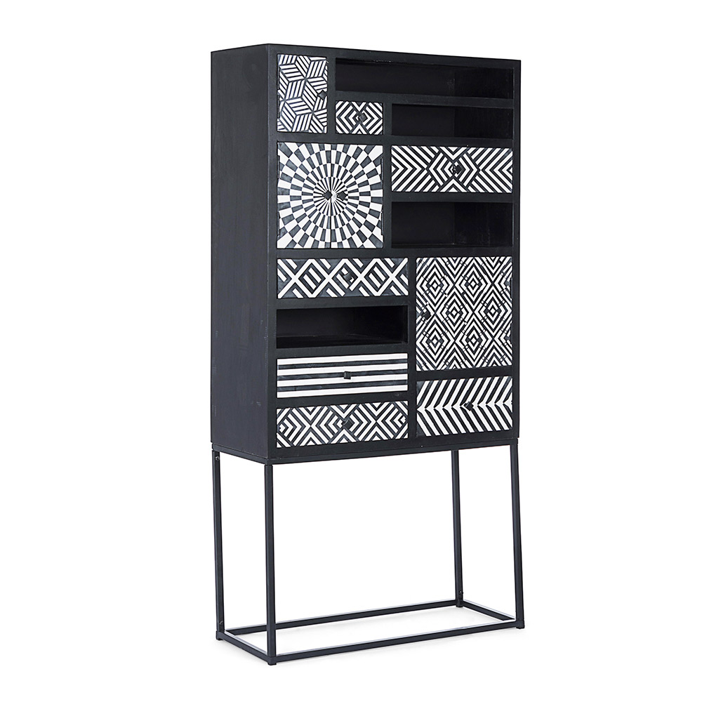 Meuble Mosaïque Ethnique 4 Portes 6 Tiroirs en Bois de Manguier - Vanitoso