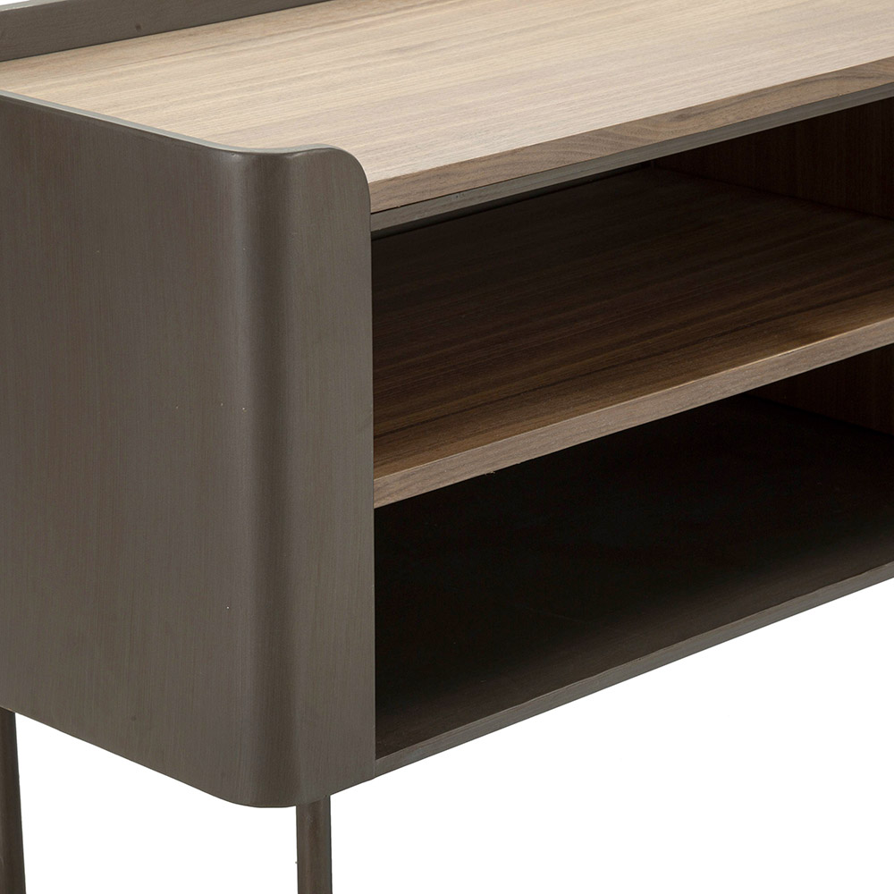 Ce meuble TV en bois et fer est la quintessence de l'élégance fonctionnelle et du design raffiné. Avec ses lignes épurées et son style minimaliste , il s'intègre discrètement dans n'importe quel environnement, tout en offrant une grande surface et un espace utile pour ranger de petits objets grâce à ses tiroirs pratiques et faciles à manipuler. La finition en bois sombre ajoute une sensation de chaleur et de richesse , tandis que la construction robuste assure durabilité et stabilité .