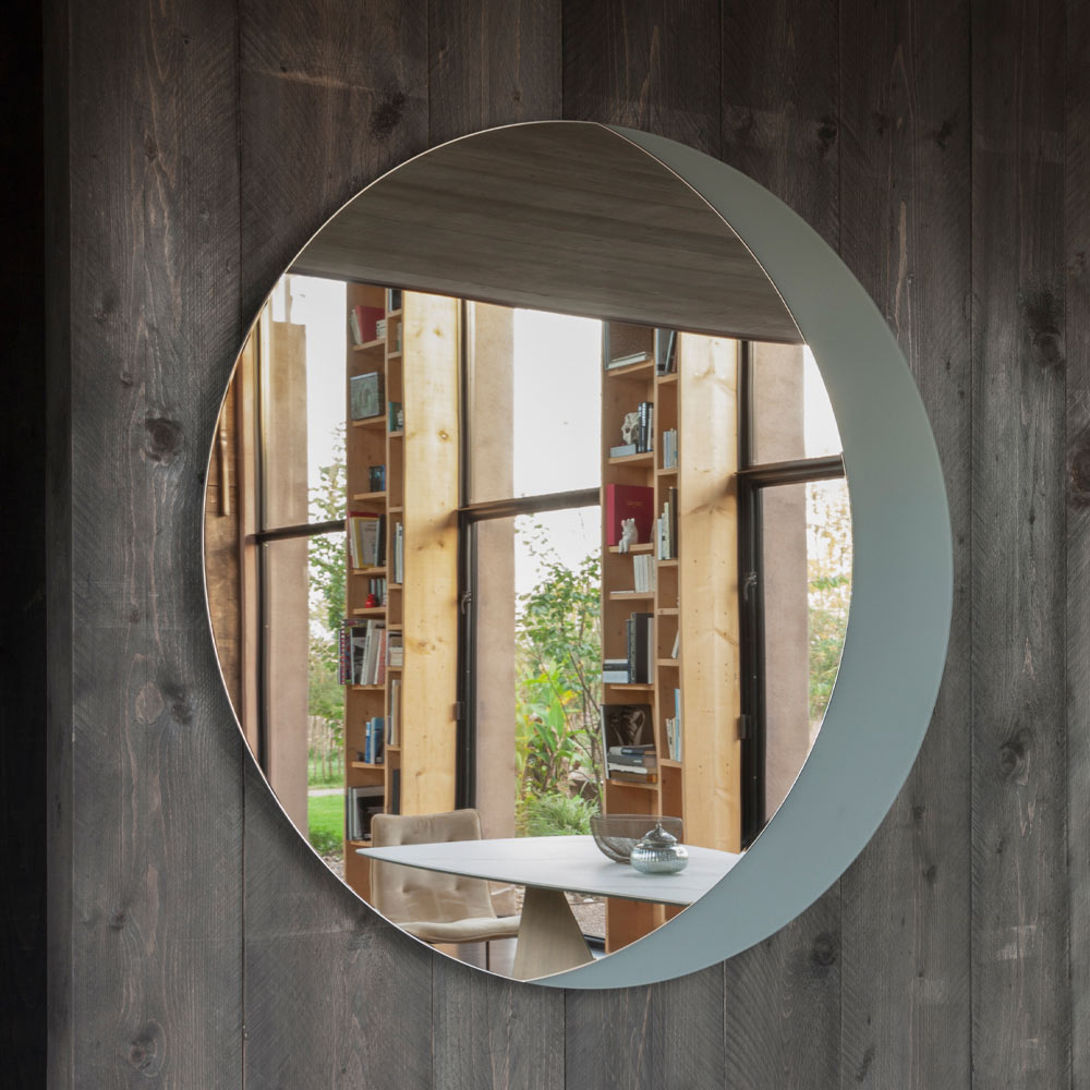 Miroir rond avec fond en verre laqué uni Fabriqué en Italie