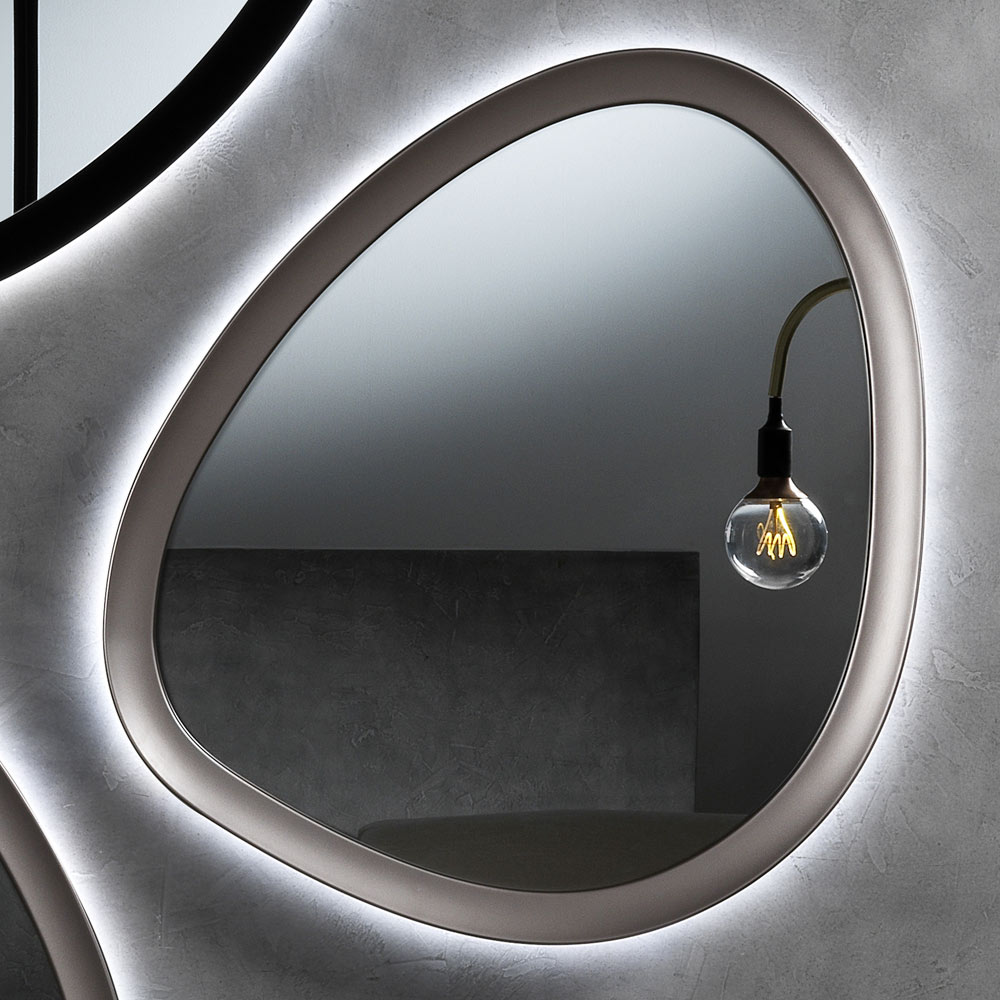 Plongez dans le charme de ce miroir rétroéclairé , véritable élément d'ameublement qui transforme chaque mur en galerie d'art moderne. Avec sa forme, il s'éloigne des conventions et devient un point focal qui captive le regard et stimule l'imagination.