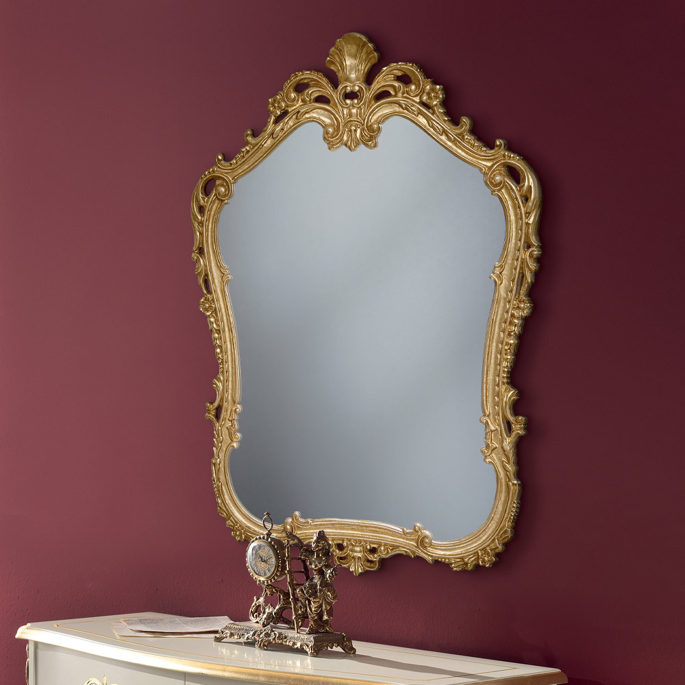 Miroir en forme avec cadre en bois perforé et décoré à la feuille d'orde style classique , ce miroir est idéal pour donner à n'importe quelle pièce une touche élégante et luxueuse . Un complément unique et raffiné, entièrement fabriqué en Italie par des maîtres artisans qualifiés , des maîtres d'art qui finissent chaque complément avec sagesse et goût pour l'élégance. La production est réalisée en utilisant des matériaux nobles et en réalisant le travailà la main avec le plus grand soin et le professionnalisme qui distinguent les produits Made in Italy .