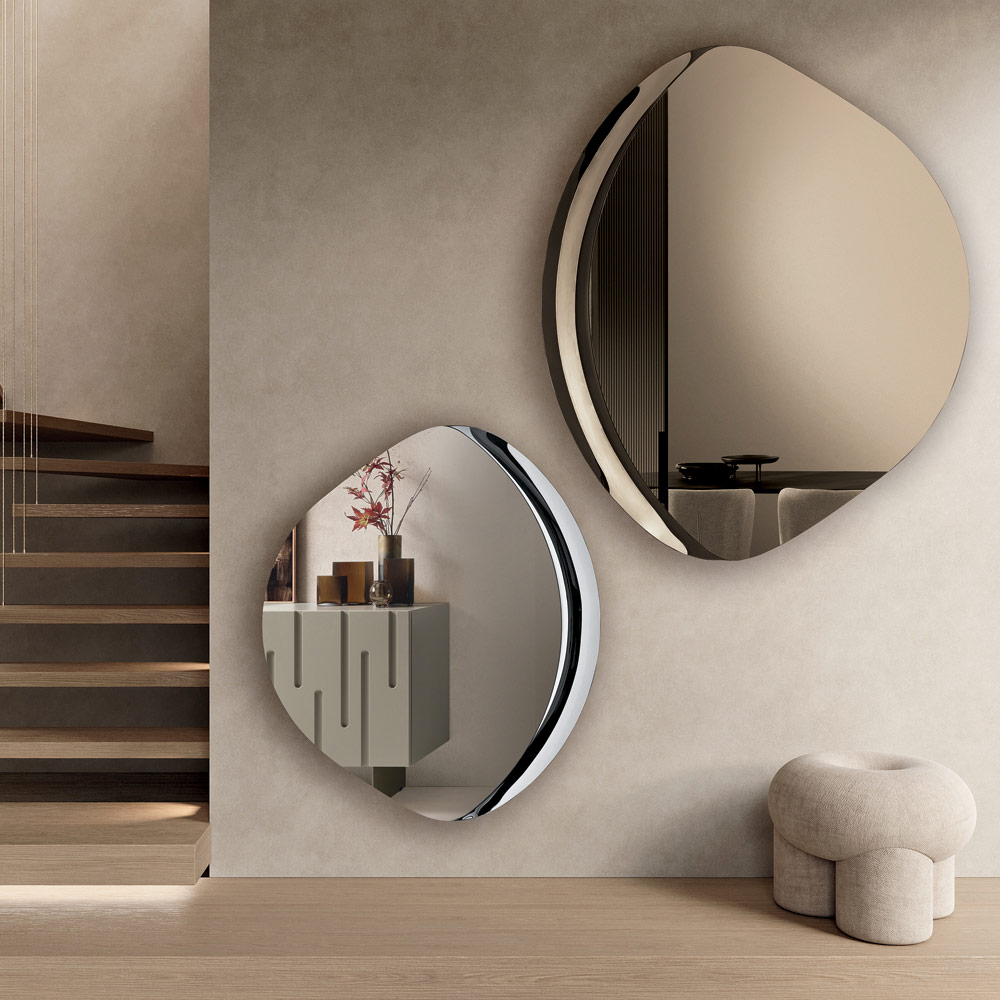 Un miroir élégant aux lignes épurées, conçu pour sublimer avec style différentes pièces de la maison, de l' entrée au salon en passant par la chambre . Sa forme sinueuse et contemporaine en fait un véritable élément décoratif, capable d'apporter personnalité et raffinement à n'importe quel espace.