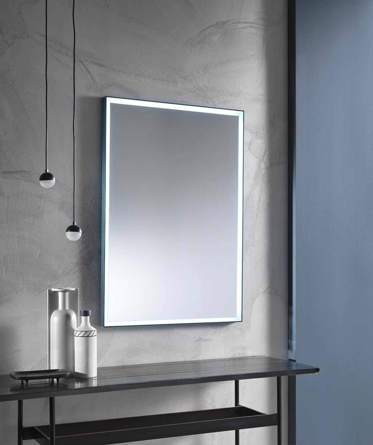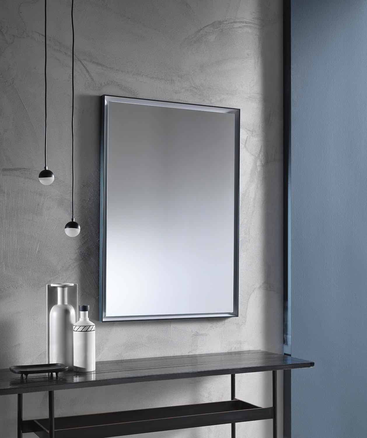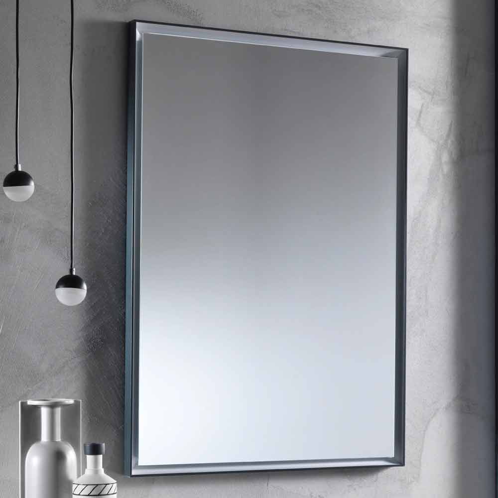 Miroir mural au design rectangulaire moderne avec cadre en aluminium et lumière LED Fabriqué en Italie.