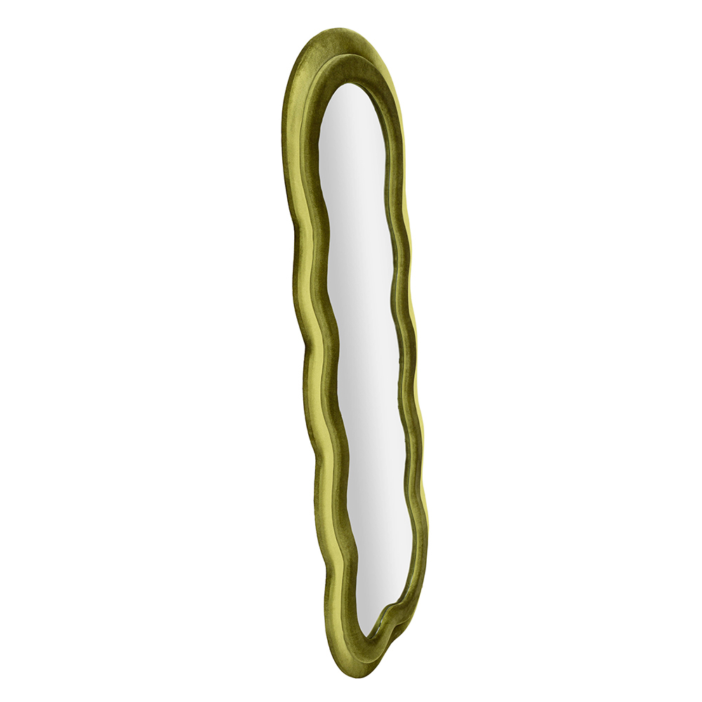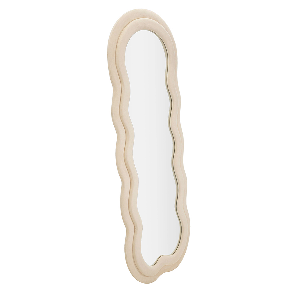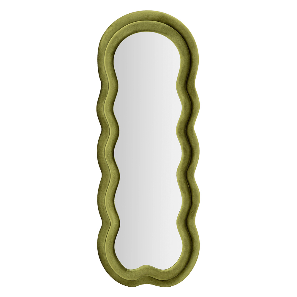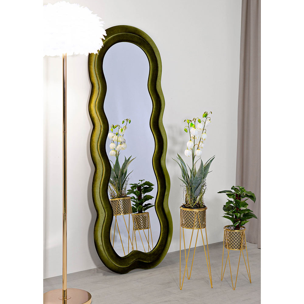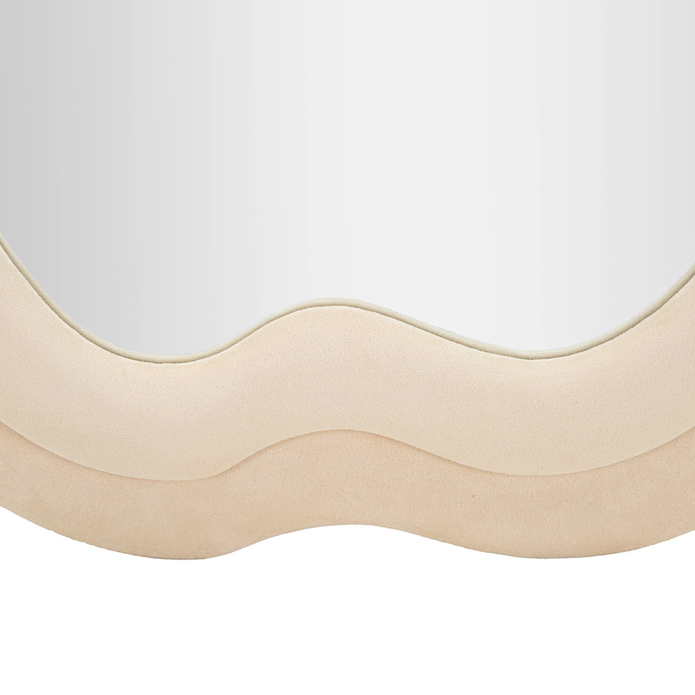 Ce miroir décoratif est un sublime exemple de la façon dont les meubles peuvent allier fonctionnalité et beauté artistique . Avec son cadre ondulé et ses lignes sinueuses, cette pièce parle un langage d' élégance fluide et de design moderne . La finition velours rehausse sa forme organique, ce qui en fait un complément parfait aux murs colorés ou neutres, capable de s'harmoniser avec une large gamme de palettes.