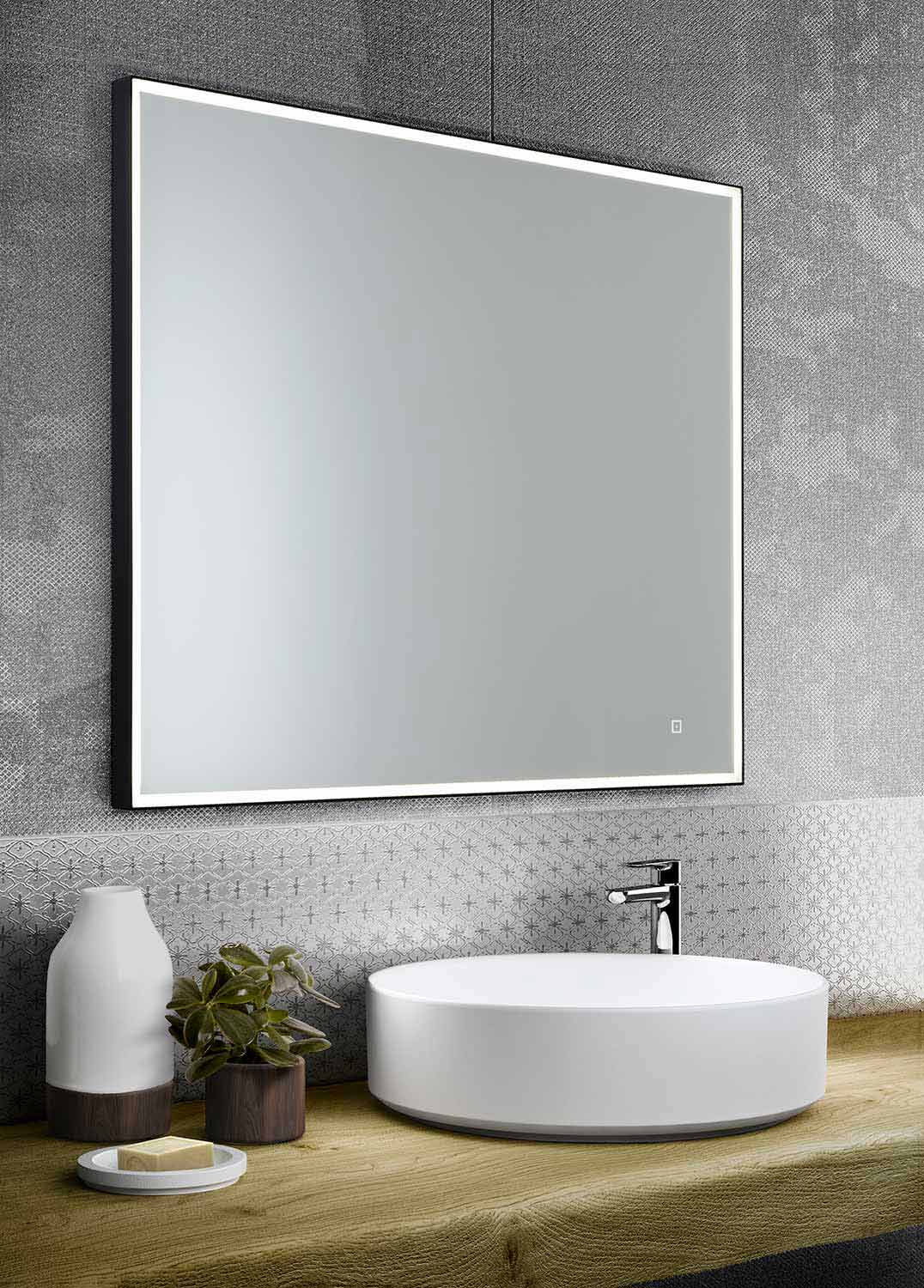 Miroir mural carré 70x70 cm en aluminium avec lumière LED Made in Italy.