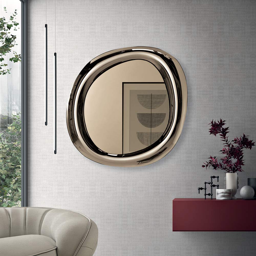 Un élégant miroir mural design, fabriqué en Italie , idéal pour sublimer des espaces tels que l'entrée , le salon ou la chambre . Son design fluide et contemporain se distingue par des lignes douces et harmonieuses qui transforment le miroir en un élément décoratif raffiné.
