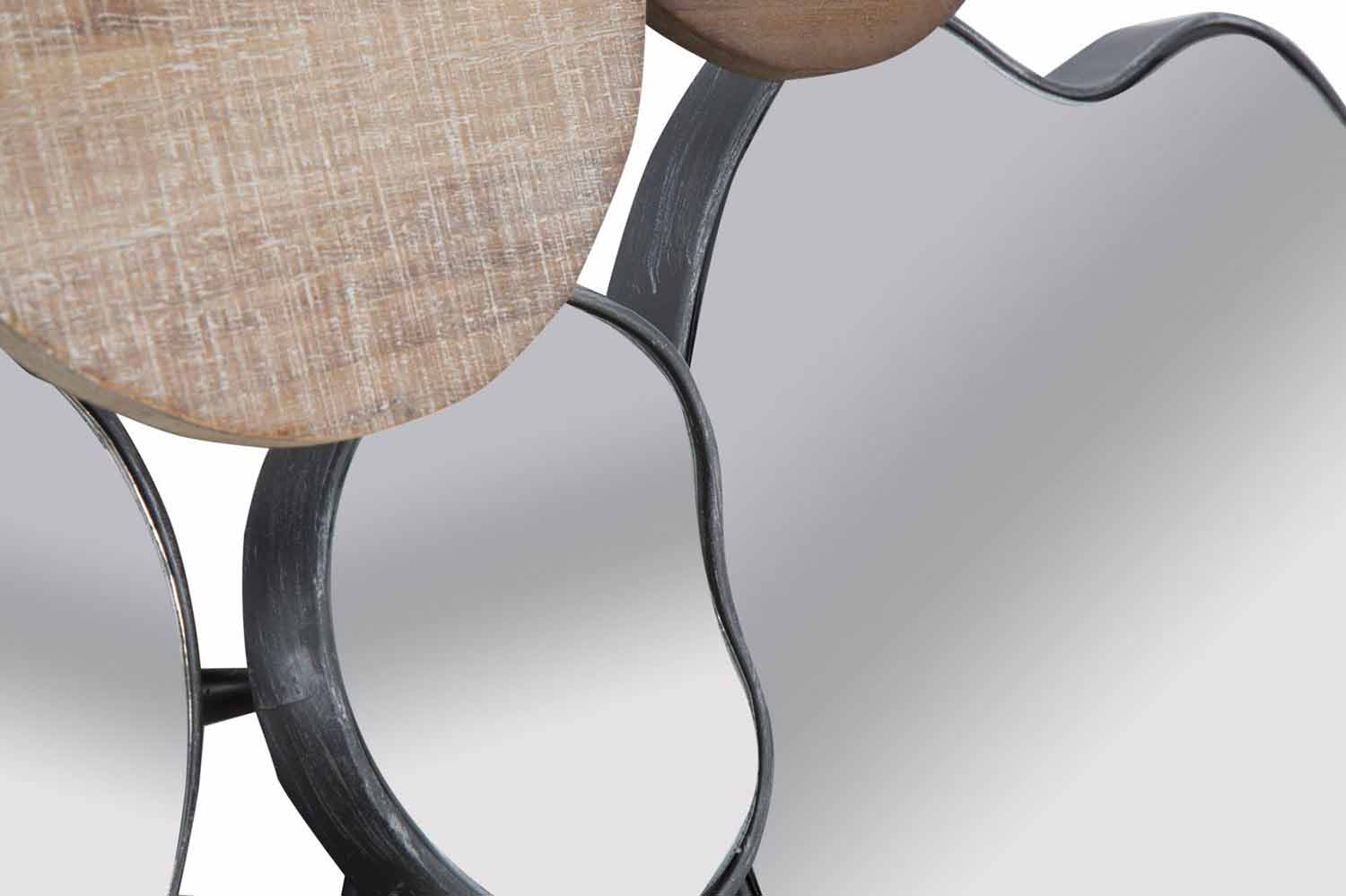 Miroir mural design moderne en bois et fer.
