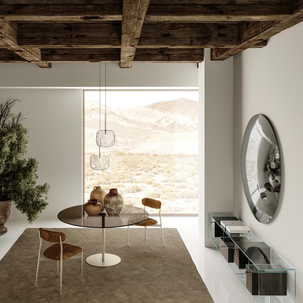 Ce miroir circulaire est l'emblème de la sobriété et du minimalisme , un accessoire d'ameublement qui s'adapte parfaitement à tout environnement moderne ou traditionnel. Sa surface réfléchissante et impeccable amplifie non seulement la lumière et l'espace, mais sert également de point focal élégant dans n'importe quelle pièce.