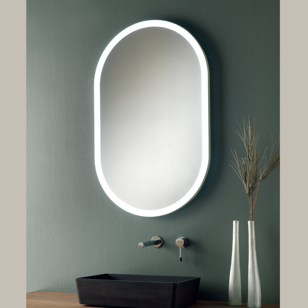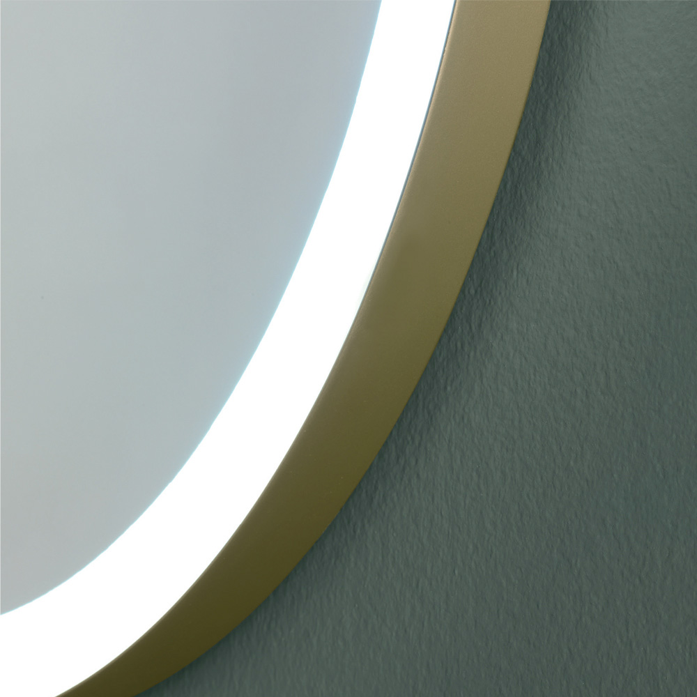 Le profil ovale est défini par un cadre métallique qui embrasse délicatement le miroir, tandis que le périmètre est éclairé par un anneau de lumière LED qui projette une luminosité uniforme et accueillante. Ce détail améliore non seulement la visibilité, mais ajoute également une atmosphère de chaleur et de profondeur aux espaces, ce qui rend ce miroir parfait pour la chambre à coucher, la salle de bain ou comme pièce accueillante dans l'entrée de votre maison.