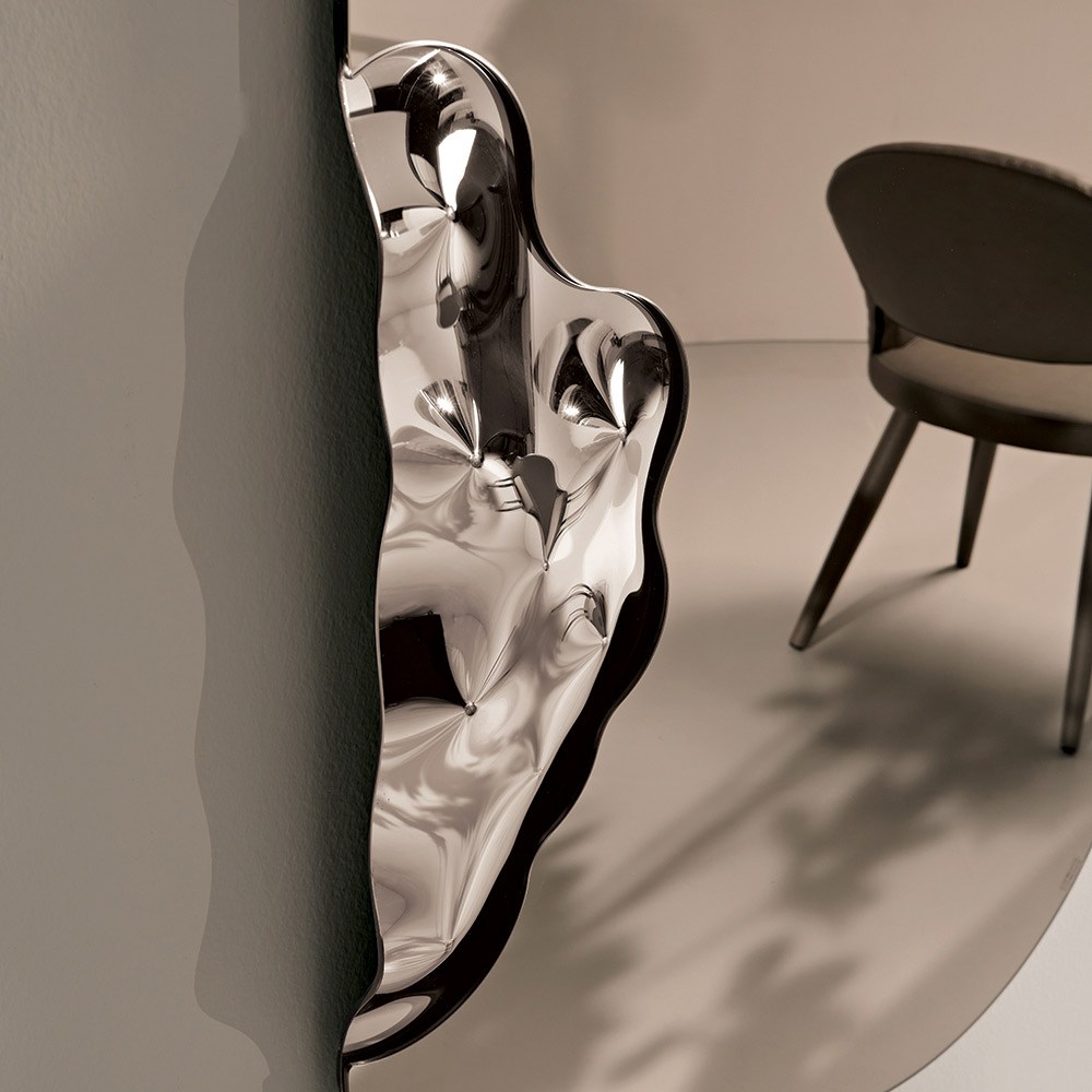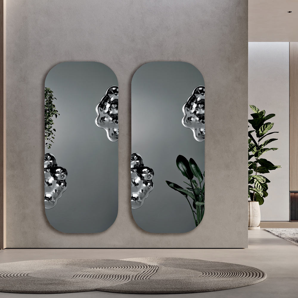Grâce à l'équilibre parfait entre rigueur géométrique et détails décoratifs , ce miroir représente un accessoire d'ameublement sophistiqué, idéal pour les environnements modernes et raffinés où le mur devient le protagoniste de l'espace.