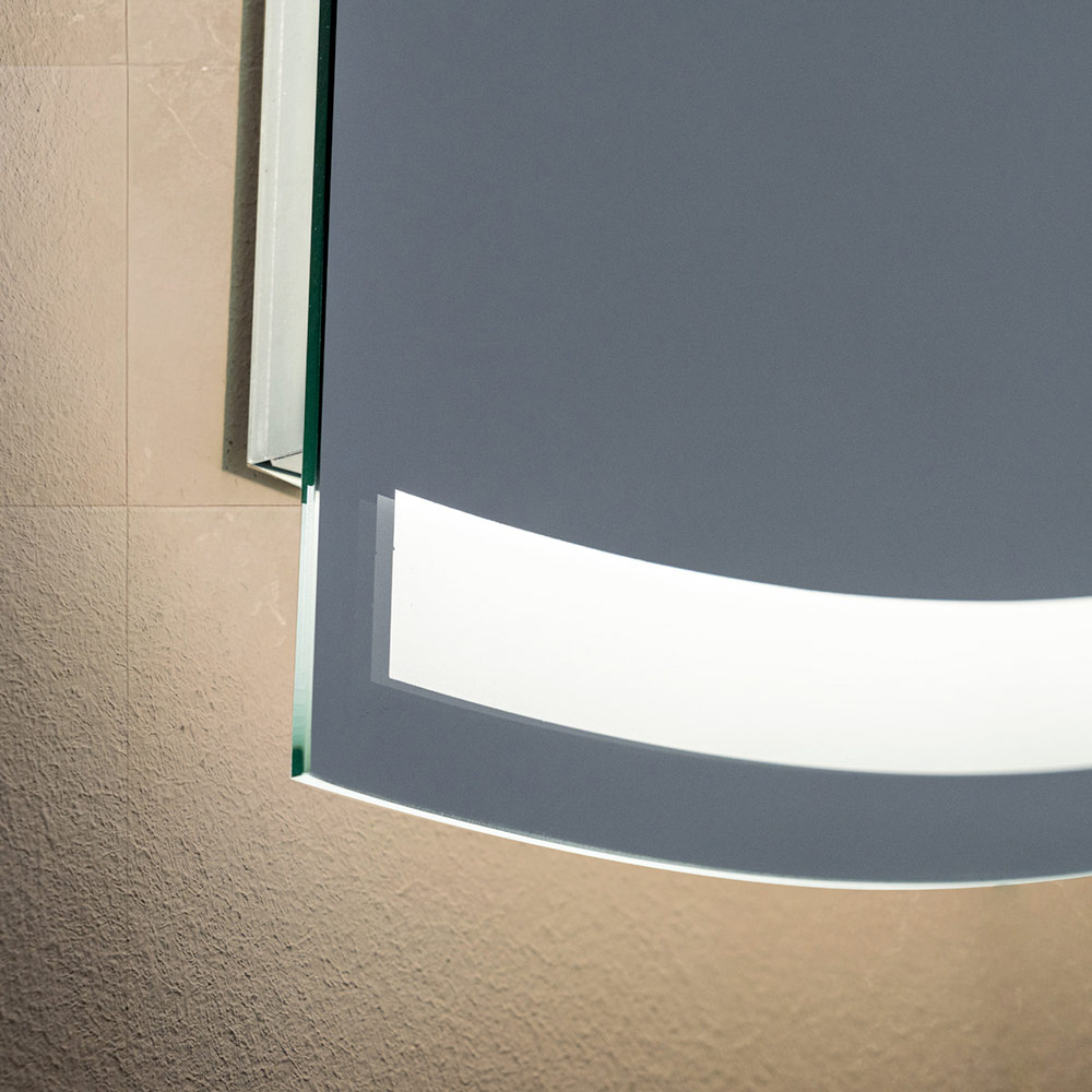 L'éclairage périphérique doux et uniforme met en valeur les lignes épurées du miroir et contribue à créer une atmosphère accueillante et raffinée, idéale pour les moments de détente et de soins. Sa structure simple et discrète permet à ce meuble de s'intégrer harmonieusement dans les salles de bains modernes et élégantes, tout en lui conférant un caractère unique.
