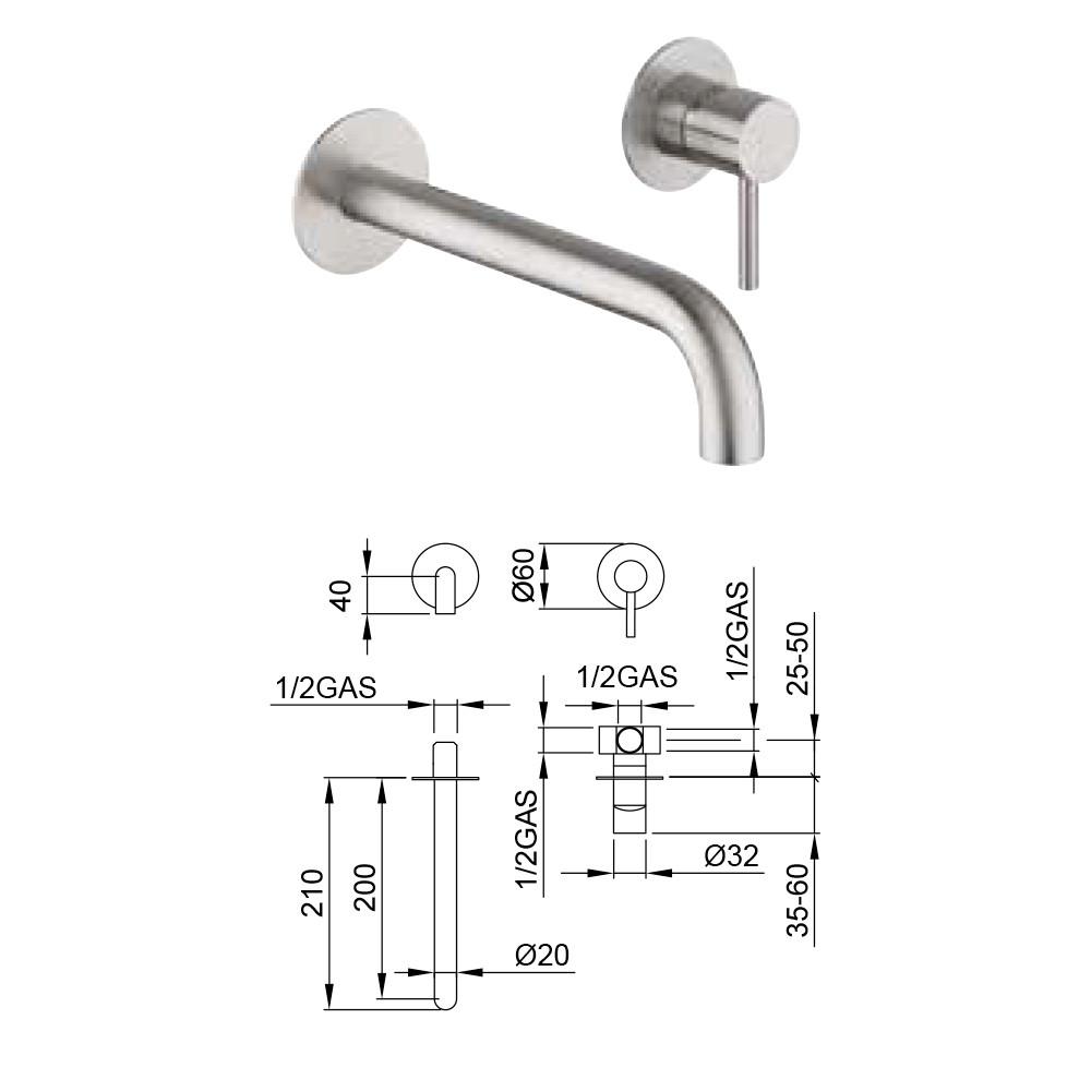 Ce mitigeur encastrable avec bec mural est le choix idéal pour ceux qui recherchent un robinet qui allie fonctionnalité et esthétique moderne . Ce modèle, sans vidage, présente une finition en acier inoxydable qui non seulement ajoute une touche de brillance et de style , mais est également extrêmement durable et facile à nettoyer.