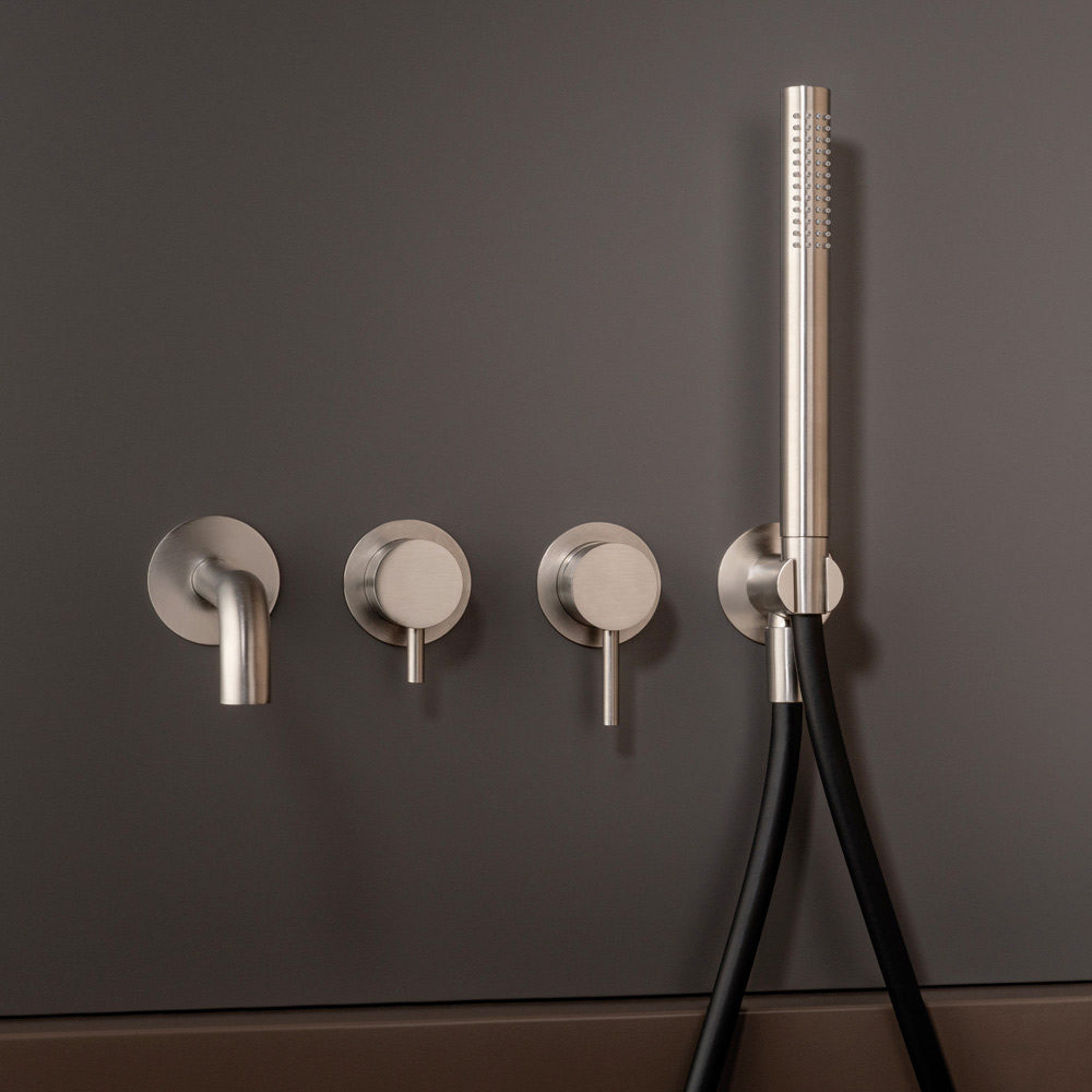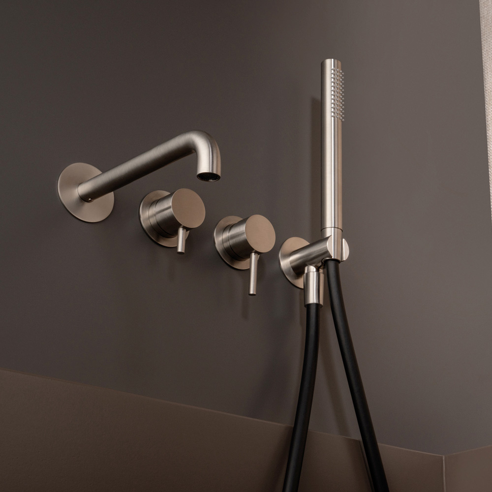 Mitigeur de bain à encastrer avec levier inverseur et bec verseur, avec kit de douche à 4 trous Fabriqué en Italie