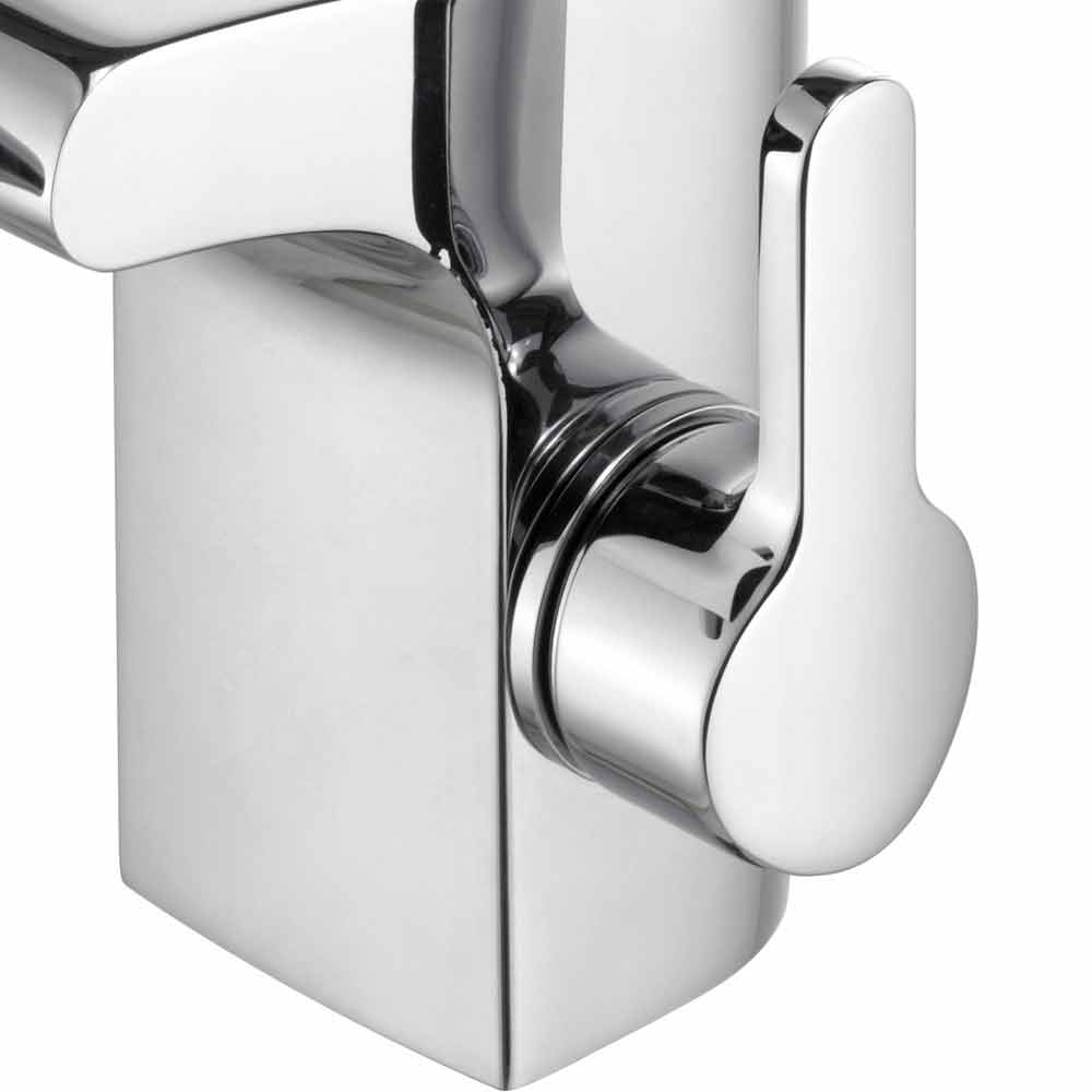 Ses lignes sont caractérisées par des angles droits et des formes géométriques qui, combinées aux courbes merveilleuses, donnent vie à un design classique et en même temps moderne, capable de se marier parfaitement avec les styles de meubles les plus variés. Grâce à l'élégante surface chromée, ce meuble unique est capable de donner une touche de lumière captivante, remplissant votre salle de bain de personnalité et de caractère.