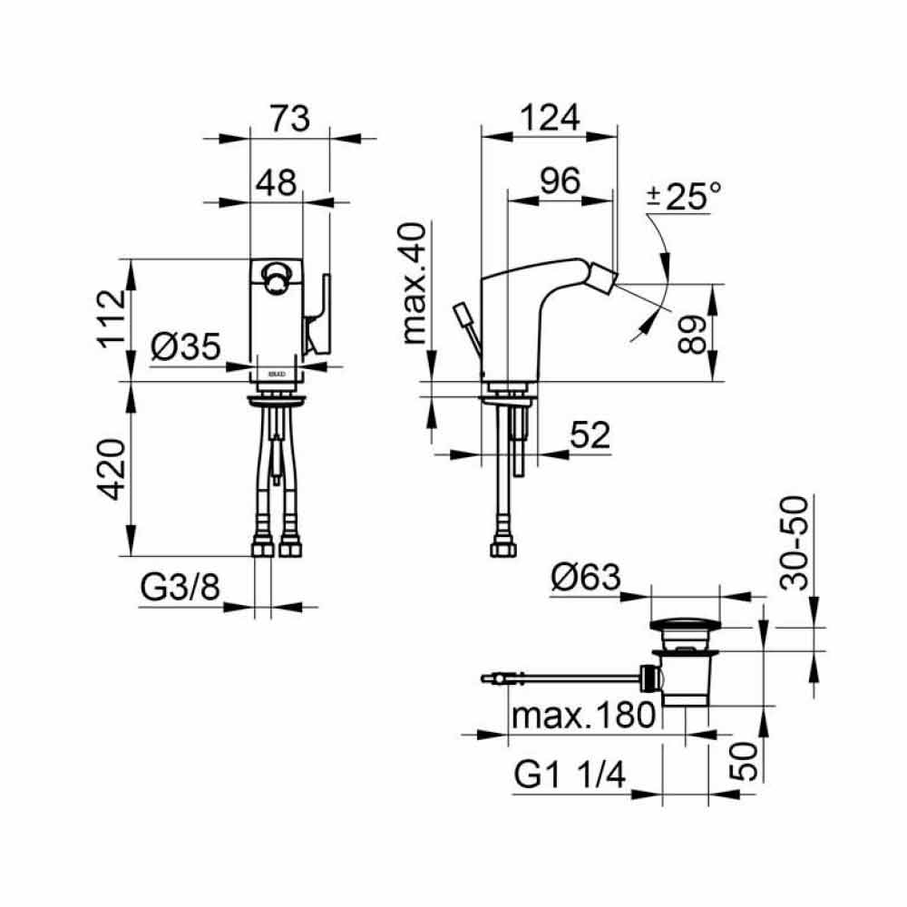 Robinet de bidet moderne en laiton chromé avec vidage.