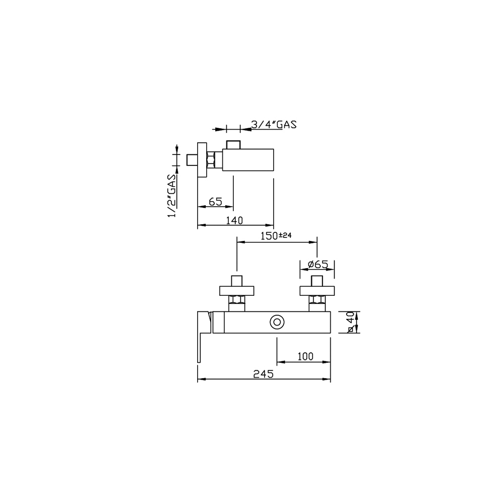 Mitigeur de douche extérieur avec raccordement colonne, sans colonne. Fabriqué entièrement en Italie en laiton ; avec des matériaux de haute qualité conformes aux normes européennes.