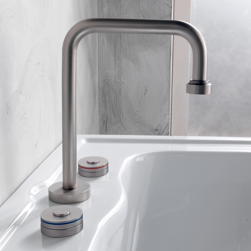 Mélangeur de lavabo moderne 3 trous en laiton avec vidange Made in Italy