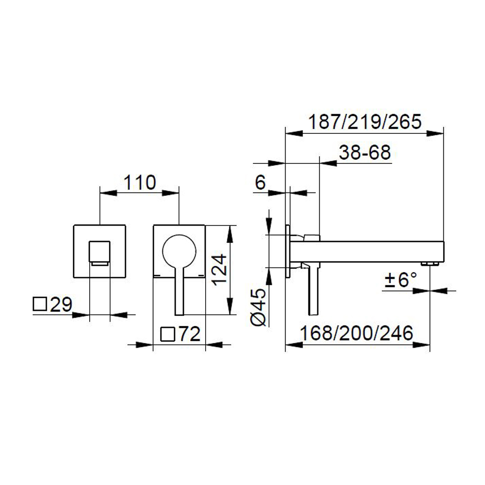 Mitigeur monocommande de lavabo mural, design carré, 3 tailles.