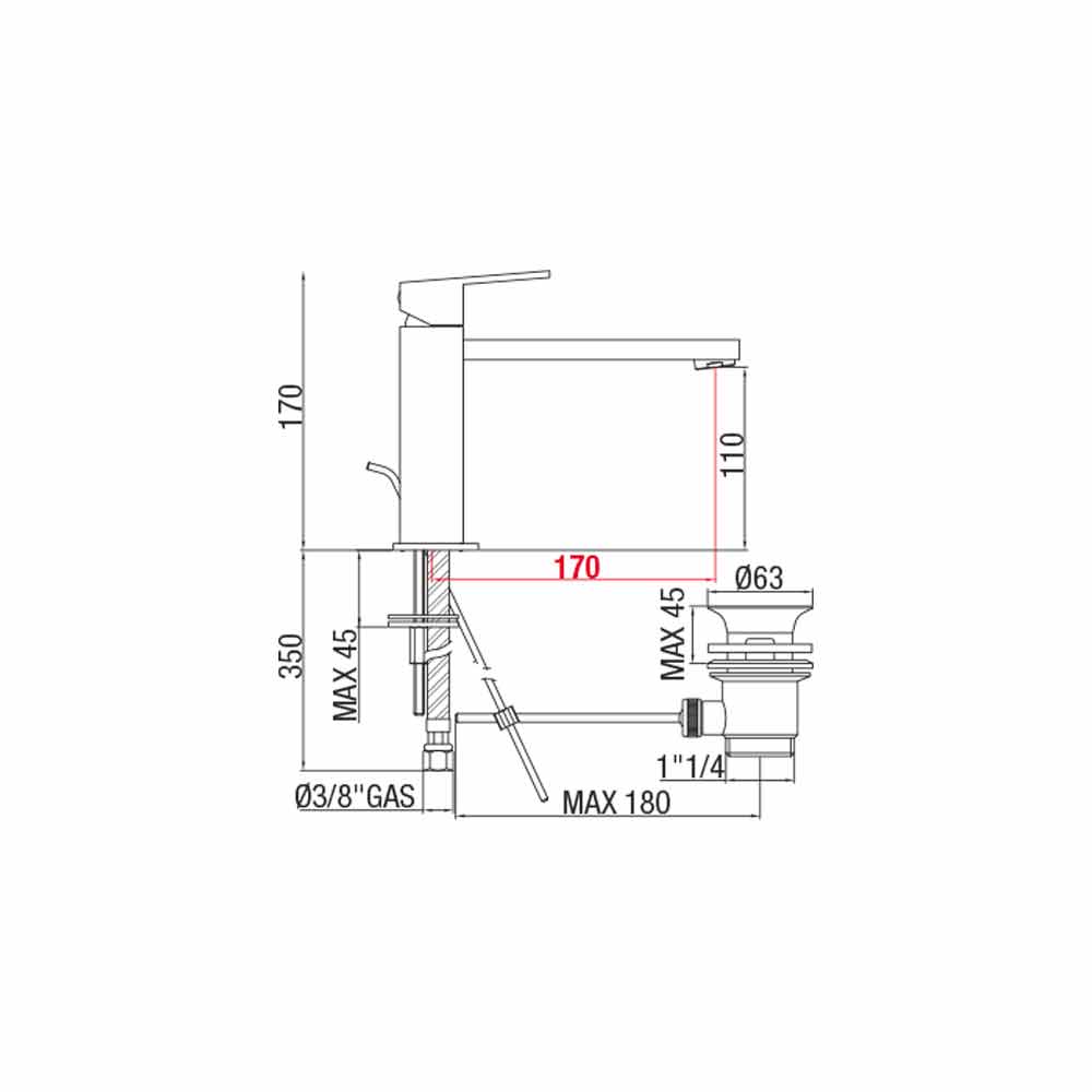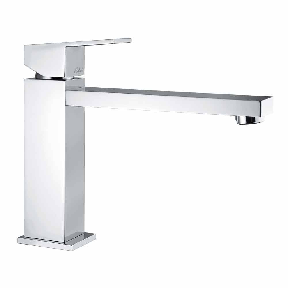 Mitigeur de lavabo de salle de bain en laiton finition chrome avec bec entraxe de 170 mm avec cartouche ouverte Kerox Ø 25 mm. Des lignes carrées et des angles bien définis donnent une touche extrêmement moderne et raffinée au produit et à toute la pièce, l'enrichissant de style et d'un goût complètement nouveau. Sa simplicité et la merveilleuse finition chromée permettent à ce robinet de s'intégrer de manière impeccable dans n'importe quel décor, ce qui le rend discret et élégant.