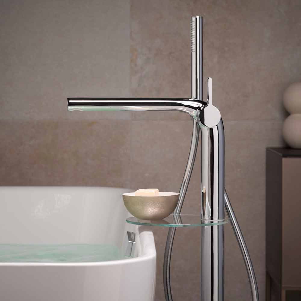 Ce qui distingue cette ligne de produits de salle de bain, c'est la perfection et le souci du détail, une caractéristique qui rend chaque produit unique et de haute qualité. La particularité des articles est représentée par la présence d'un régulateur de jet d'eau qui, intégré dans le bec, est invisible de l'extérieur. Les nombreuses finitions disponibles permettent également de donner à l'environnement une touche personnelle avec une forte personnalité.