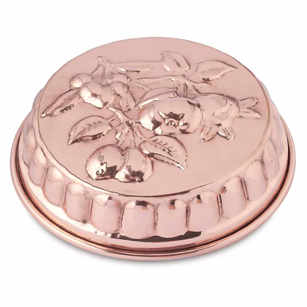 Moule rond à décor de fruits en cuivre étamé fabriqué à la main en Italie.