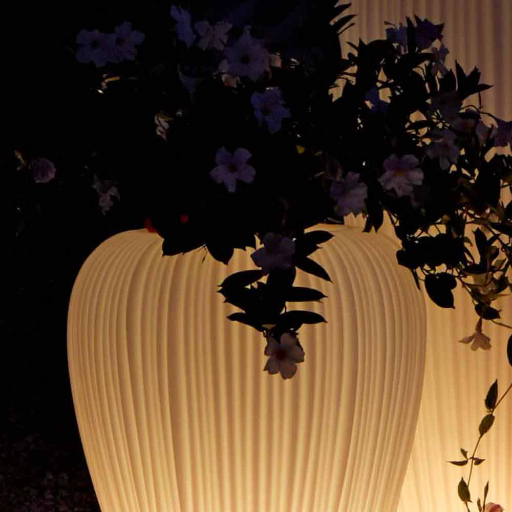 Désormais, grâce à l'éclairage basse consommation jusqu'à 32 W (non inclus), la collection de vases Myyour brille également de sa propre lumière.