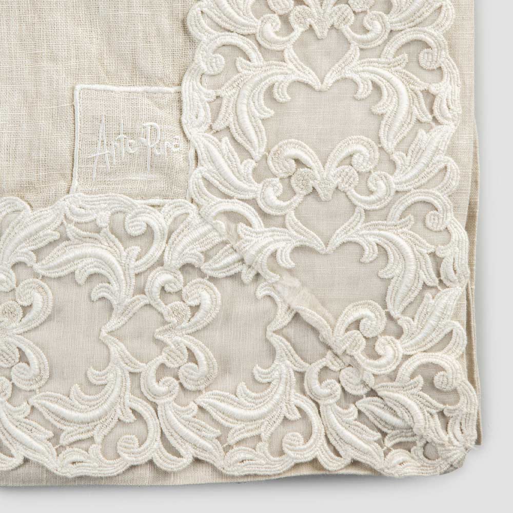 Nappe en lin avec dentelle Farnèse rectangulaire, belle pièce fabriquée en Italie.