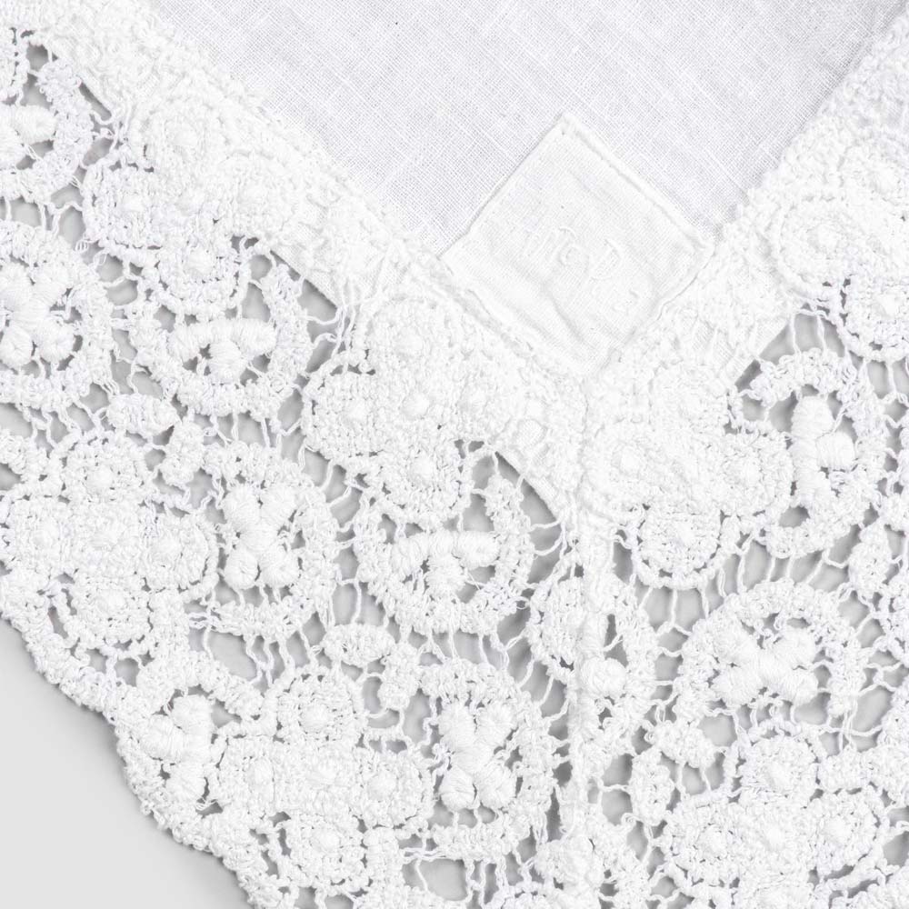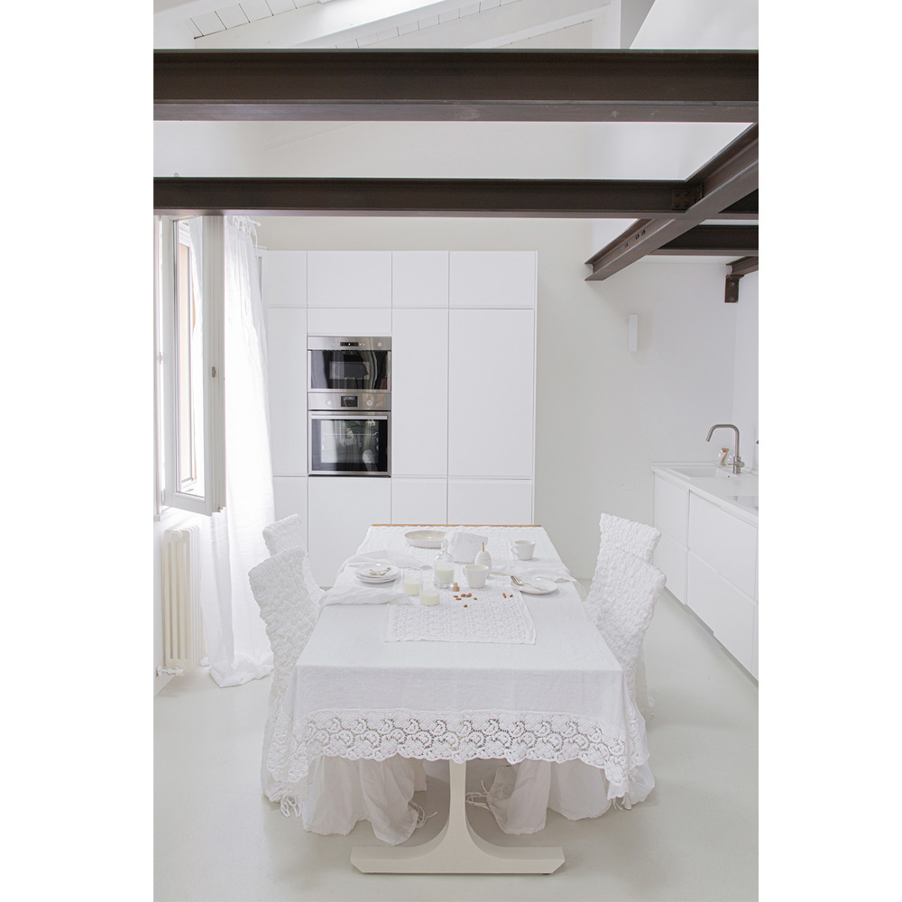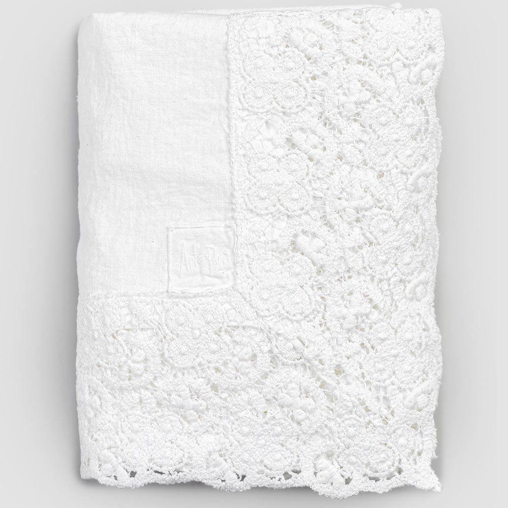 Nappe en lin blanc pur avec dentelle, design de luxe de haute qualité fabriqué en Italie.