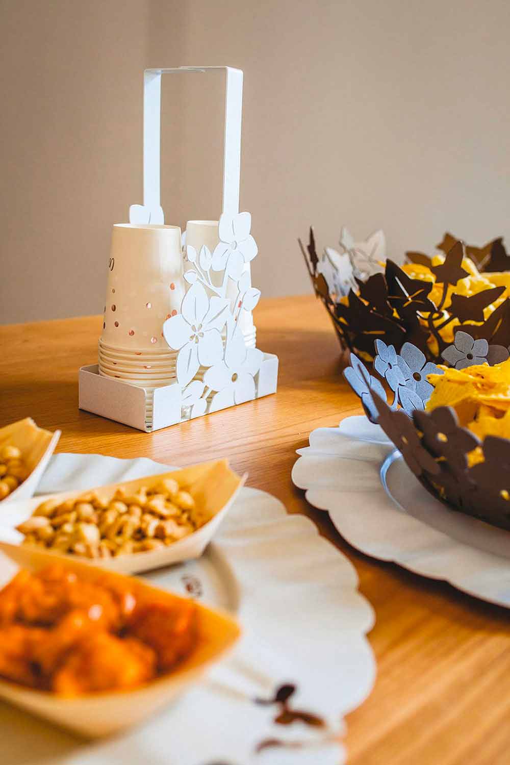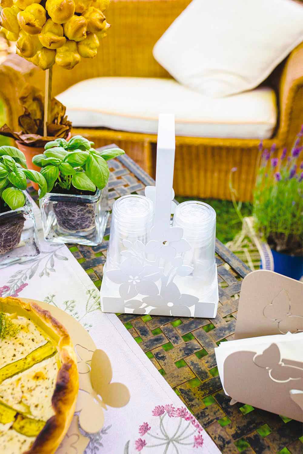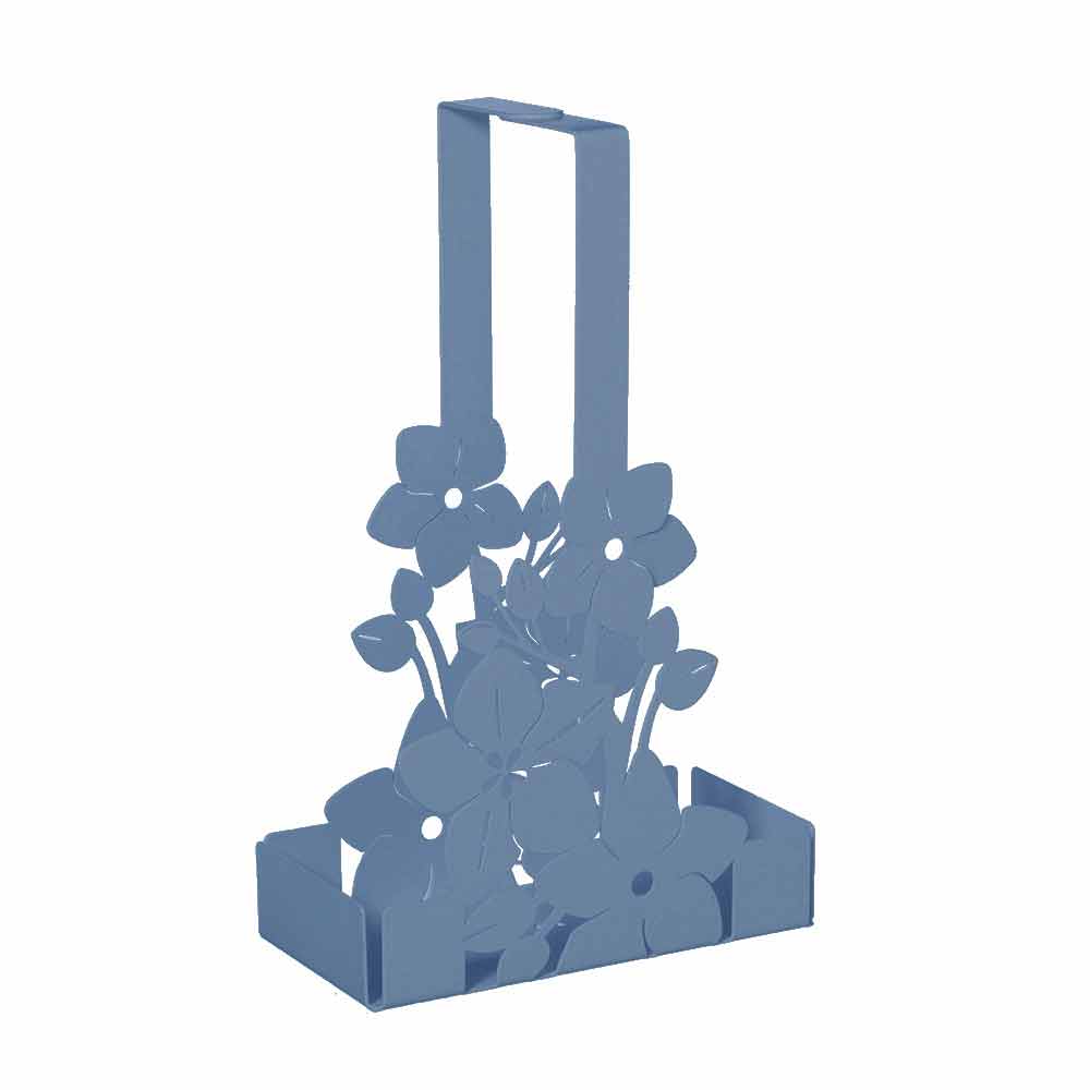 Porte-gobelet double de table avec un style floral, fabriqué à la main en Italie en fer blanc, marbre, bleu clair ou boue.