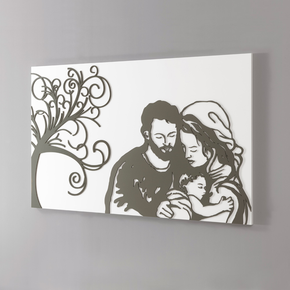 Ce tableau est le fruit de l'artisanat italien, en effet les personnages sont dessinés à la main puis peints à la lumière du faisceau laser, sans aucun déchet et dans le respect de l'environnement. Il est destiné à représenter la douceur de la famille associée au symbole de l'arbre de vie pour susciter une émotion forte et intense chez ceux qui l'observent.