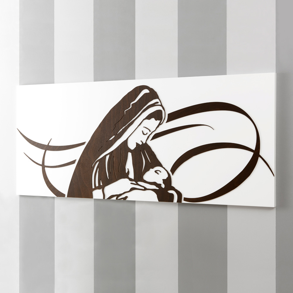 Toute la douceur, l'affection et les soins d'une femme tenant son enfant dans ses bras sont représentés dans ce tableau. Tout a été étudié dans les moindres détails pour créer un produit avec un grand impact visuel et scénographique et nous nous sommes appuyés sur l'expérience des maîtres artisans italiens pour créer le design à la main.