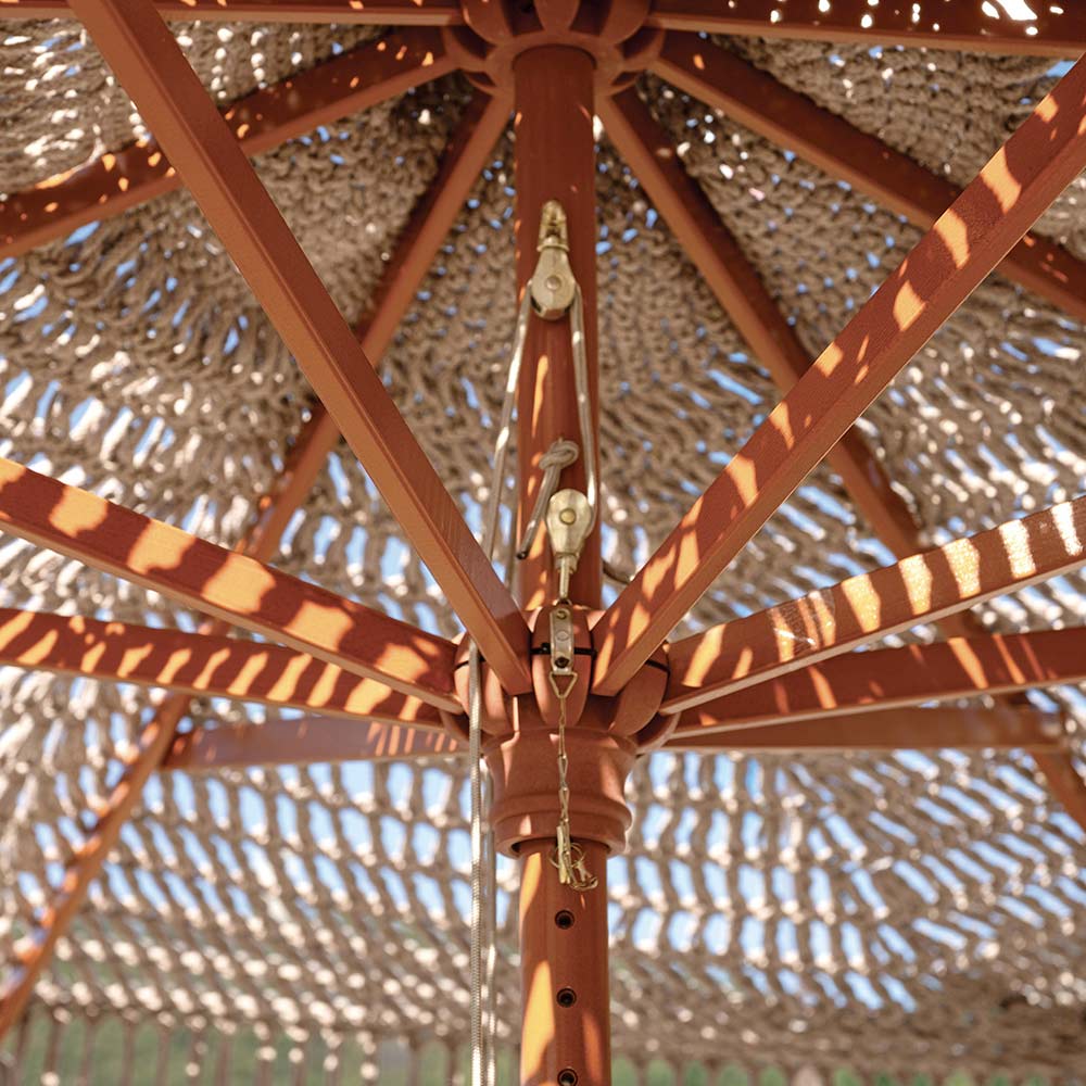 Doté d'un système de double poulie , il s'ouvre et se ferme facilement et en douceur, pour un usage quotidien simple et agréable. Sa hauteur maximale de 2,64 mètres (avec socle) lui confère des proportions idéales pour créer un grand espace ombragé, accueillant et relaxant.