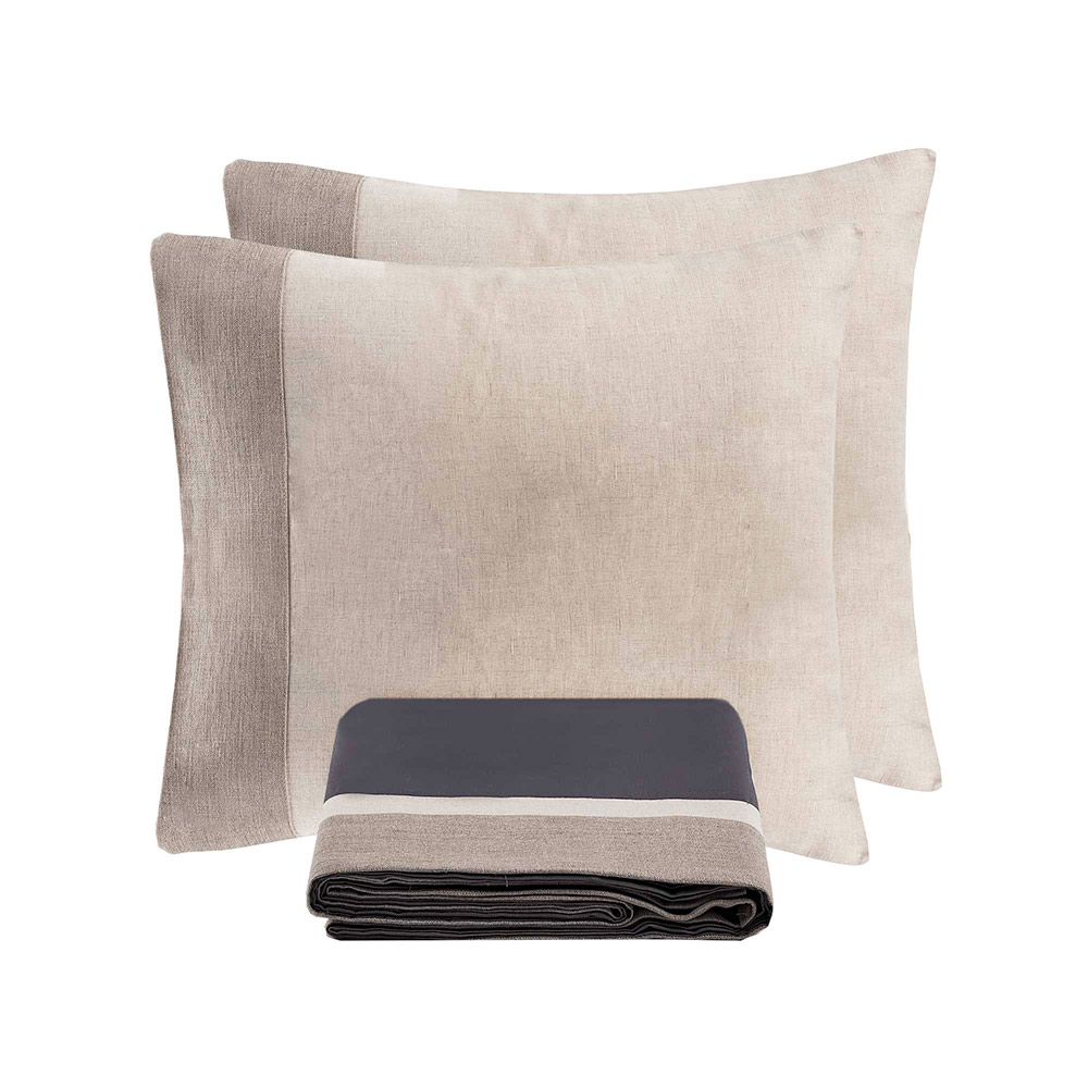 Découvrez l' ensemble réalisé avec un mélange raffiné de 90% coton et 10% lin , une combinaison idéale pour ceux qui recherchent un confort maximal associé à un design impeccable. Cette composition unique allie la douceur et la respirabilité du coton à la résistance et à la fraîcheur naturelle du lin, offrant une expérience de sommeil supérieure en toute saison.