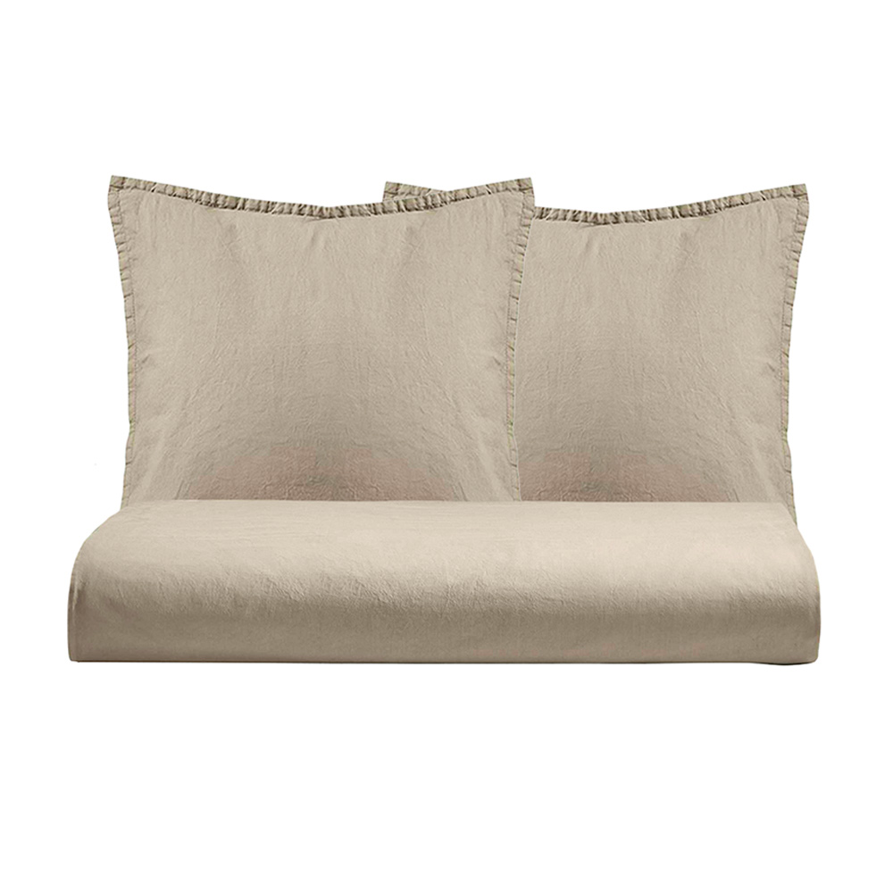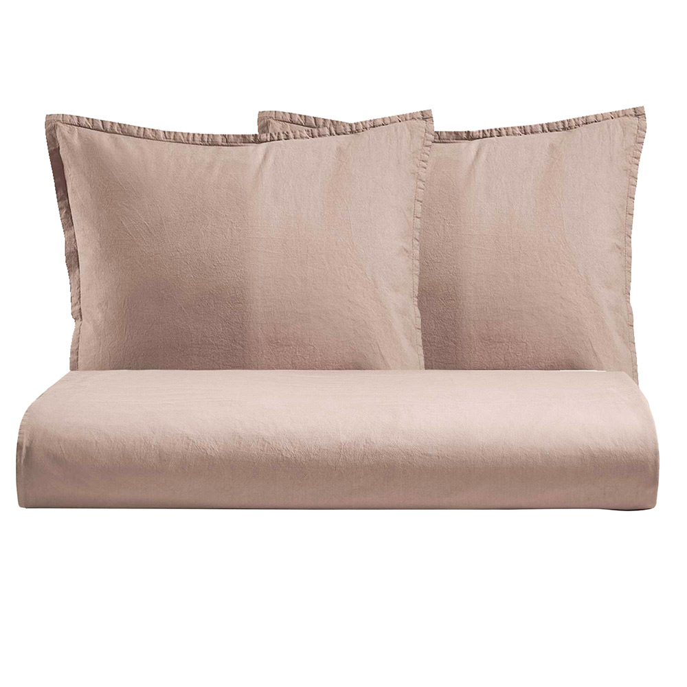 Parure de lit double en pur coton teint en pièce avec 2 taies d'oreiller - Délicatesse