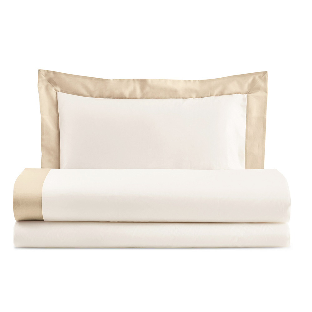 Drap de lit complet queen-size en 100% coton 160 TC et 10% satin de coton 300 TC.