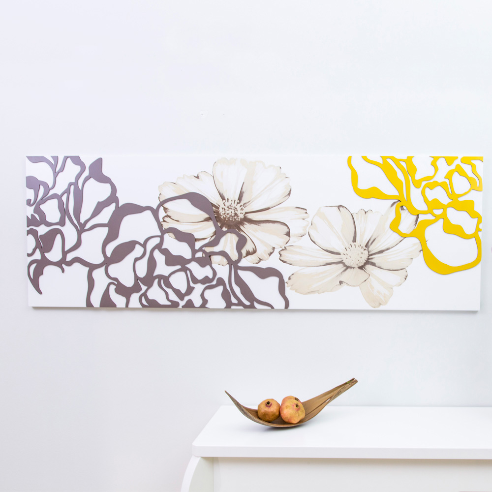 Panneau décoratif représentant des fleurs et des pivoines avec leurs propres nuances et des détails abstraits de différentes couleurs .