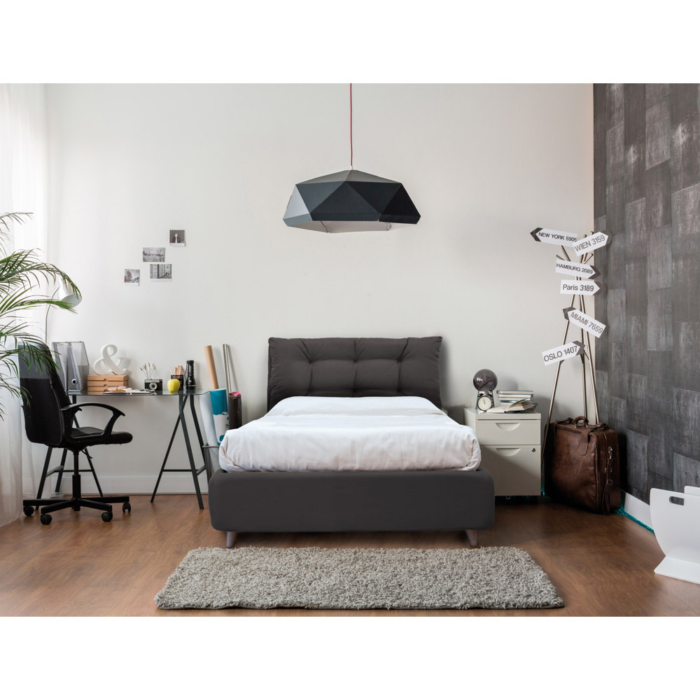 Modèle avec conteneur confort : cadre de lit rembourré avec sommier supporté inclus et pied confortable de 11 cm de hauteur qui permet le nettoyage sous la structure. Conteneur à ouverture oblique et horizontale qui ajoute la praticité d'un grand compartiment d'une incroyable capacité et garantit un maximum de commodité lors de la confection du lit.