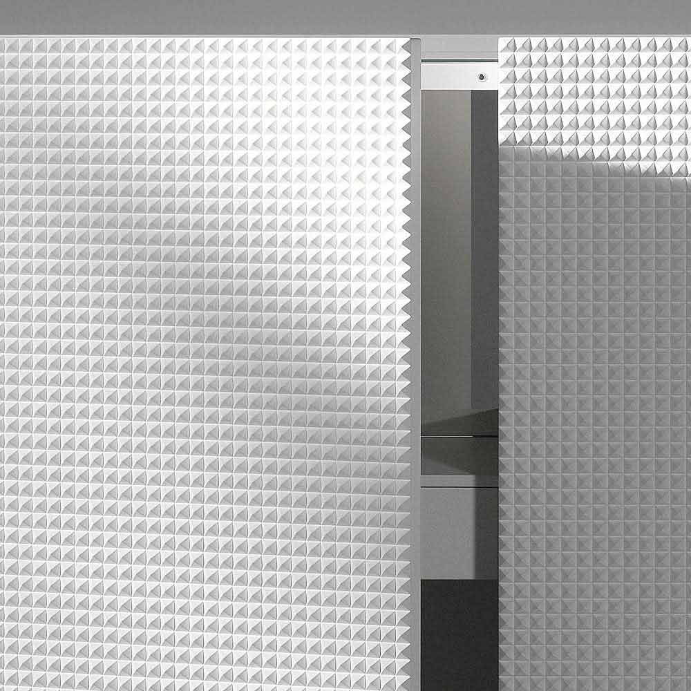 Placard moderne avec deux portes, ouverture sur le côtés du meuble et top en verre retrovernis.